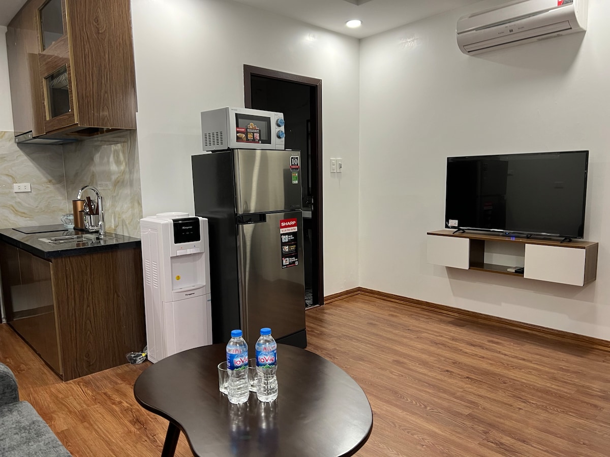 Welcome to our renovated apartment, designed for a comfortable stay in Hanoi. This peaceful retreat is our personal haven when visiting family. It features a fully equipped kitchen, a cozy living room with city views, and double-glazed windows for quiet comfort. Enjoy air conditioning and amenities like a washing machine and dryer. The main bedroom, open small bedroom, and double sofa bed are ideal for families. The building has an elevator, security, and optional motorcycle parking.