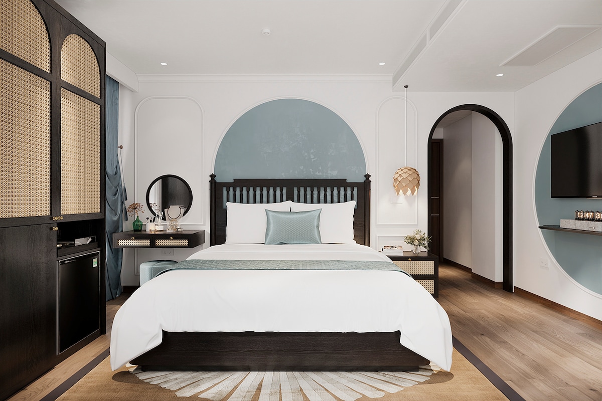 A beautifully designed and unique room in a standout neighborhood hotel just steps from the main street *Highlights: - Near the Old Quarter and tourist attractions within walking distance - Spacious & modern lobby with 24/7 reception - Breakfast included - Elevator - TV with Netflix - Dining room - Work desk - Free luggage storage