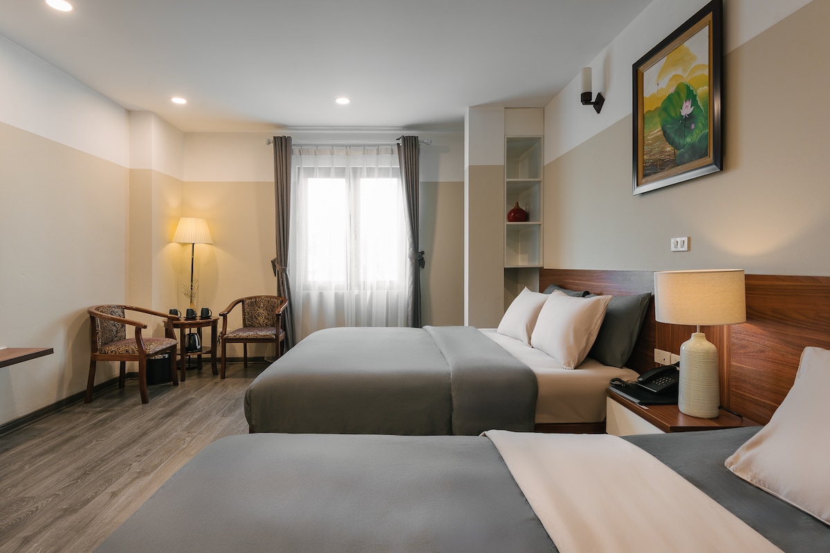 With a blend of contemporary comfort and traditional charm, our 4-star hotel is nestled in the heart of Hanoi's historic Old Quarter. Our Deluxe Room with Balcony offers a luxurious escape, featuring a spacious interior with a comfortable king-sized bed and modern amenities. A private balcony to enjoy panoramic views of Hanoi’s charming Old Quarter, making it the perfect spot to unwind after a day of exploration.
