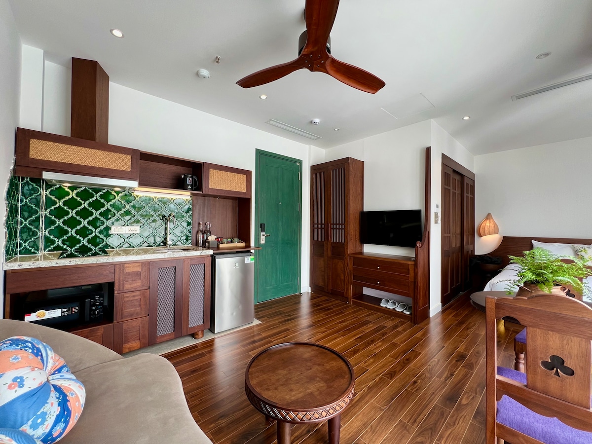 Nằm giữa trung tâm phố cổ, nơi giao thoa của những giá trị văn hoá, lịch sử và truyền thống, căn hộ mang đến một không gian sống hiện đại nhưng vẫn giữ được nét tinh tế. Với diện tích rộng rãi, ban công ngập tràn ánh sáng tự nhiên, căn hộ không chỉ thoáng đãng mà còn mang đến sự thư thái. Thiết kế tối giản và sang trọng, vị trí siêu thuận tiện, căn hộ là lựa chọn lý tưởng cho 2 người. Hãy đến để lưu trú, và trải nghiệm cuộc sống tiện nghi, hòa mình vào nhịp sống văn hoá đặc sắc của Hà Nội.