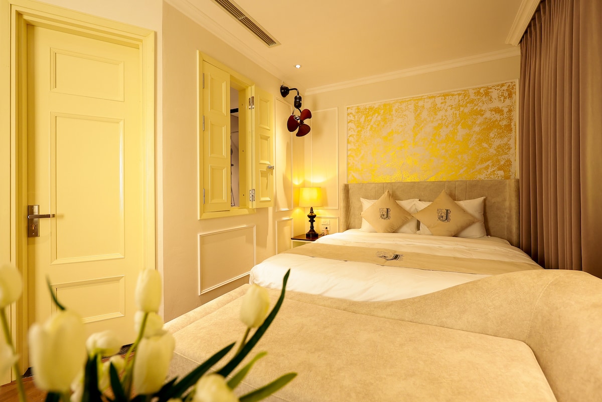 This is a 170m2 duplex penthouse in our newly opened boutique hotel in Hoan Kiem district. The design is stylish with the touches of local art, natural lighting reaching every corner of the apartment. The streets of Nam Ngu were lined with colonial villas and traditional Vietnamese houses. Originally, it was a small settlement where artisans and traders set up their homes and workshops.Neighborhood is lively in the morning with lots of good restaurants and well known local street food around.