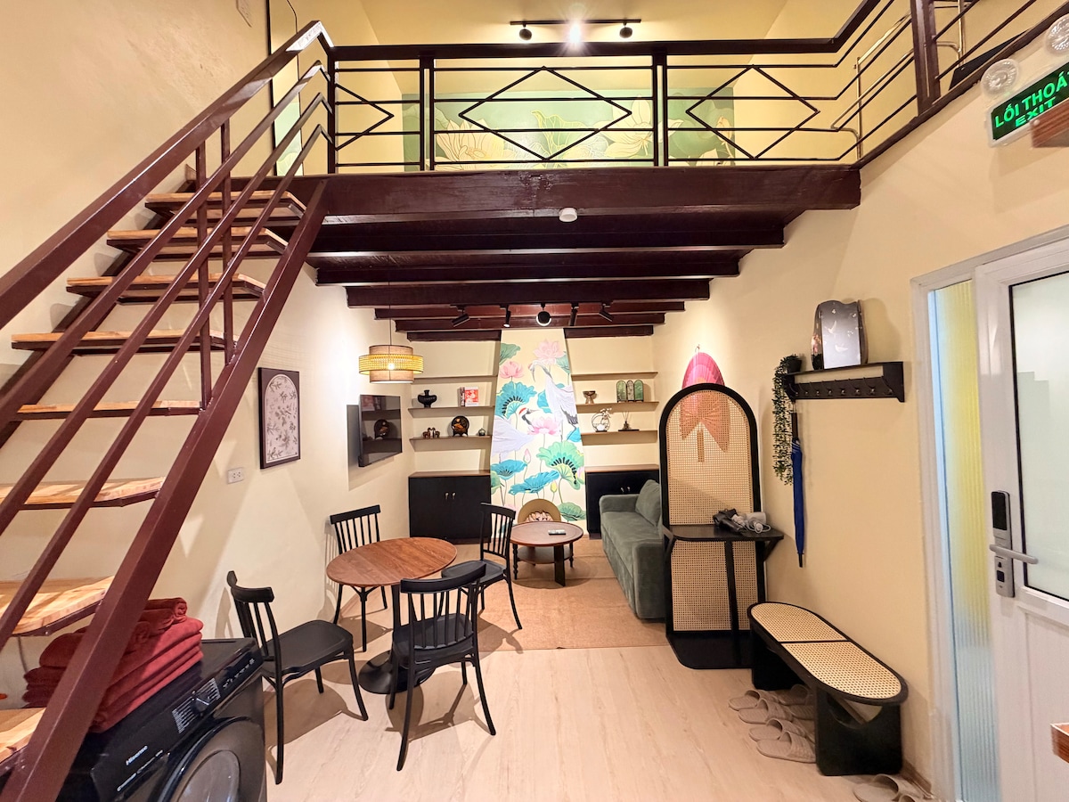 A stay in the past, present and future Built in 1900s and newly renovated. The loft is specially furnished and decorated for guests who want a true break 🚶5-10’ walk to beer street, 24/7 food quarter, night markets, Hoan Kiem Lake and St. Joseph Cathedral 🙏The original bricks and purlin were kept and recycled into furnitures to pay respect to the building’s originality 🇻🇳Here you are invited to explore and enjoy the raw beauty of Hanoi to the fullest