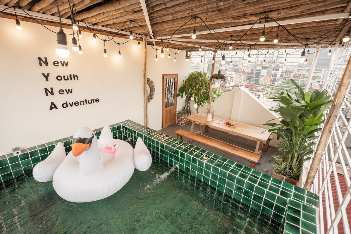 现代河内住宿|屋顶泳池和电梯