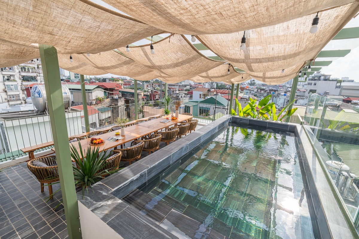 河内独家住宿-整栋大楼和天际线泳池