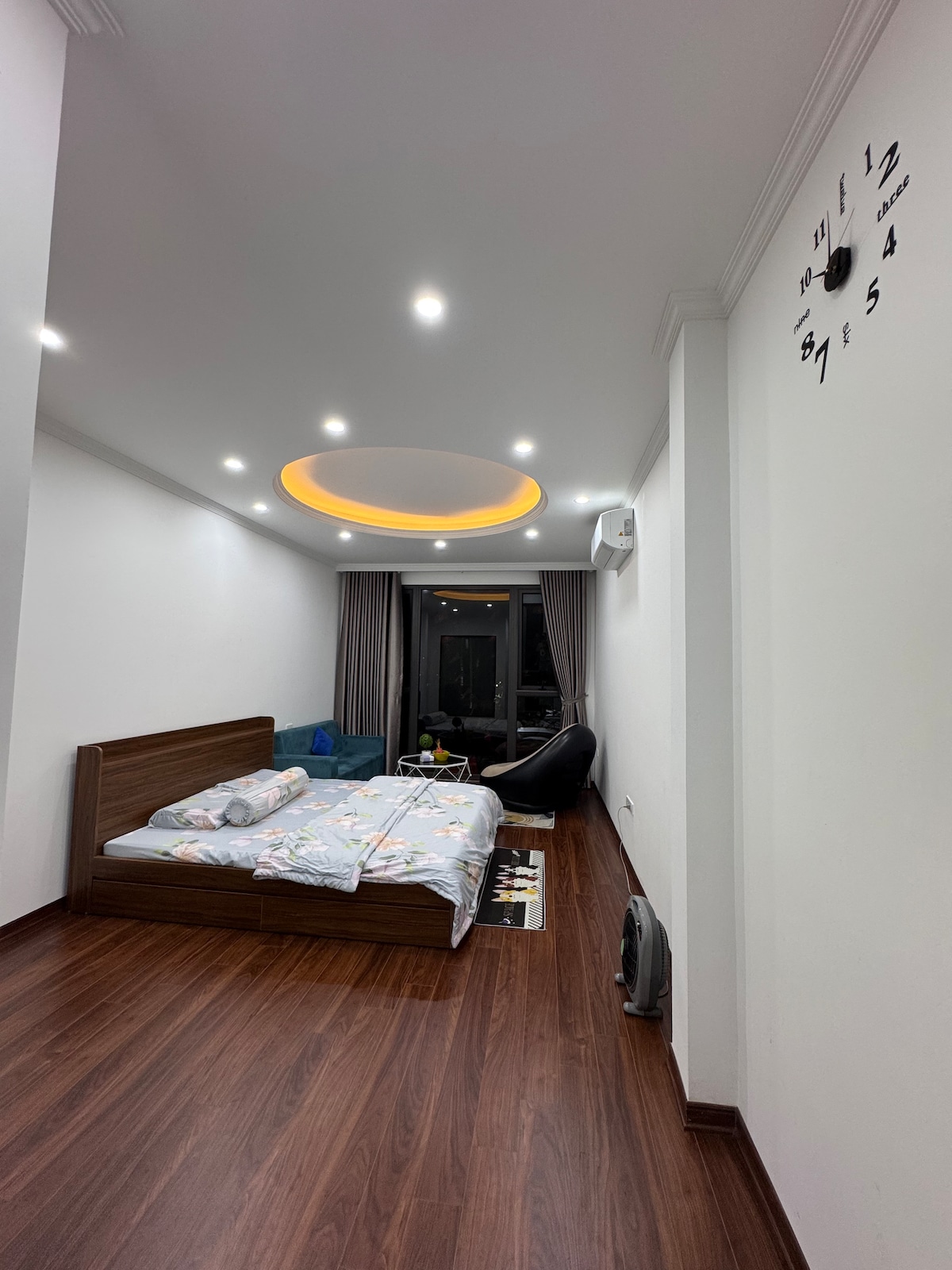 Căn hộ cao cấp Vinhomes Times city của mình có phòng khách và PN riêng biệt. PN giường cỡ lớn, có tab đầu giường, bàn trang điểm. CH có điều hoà, và còn có thêm quạt điện tăng độ thoáng mát cho phòng. Nhà VS riêng, nhà tắm với vách kính đứng trong suốt. CH đầy đủ đồ hiện đại, rộng rãi, sáng sủa với tầm nhìn thoáng giữa trung tâm thành phố. Toàn bộ đồ nội thất, trang thiết bị điện tử, đồ, các vật dụng sinh hoạt được chủ host chọn lựa, chuẩn bị đầy đủ, cận thận, tươm tất, gọn gàng và sạch sẽ.