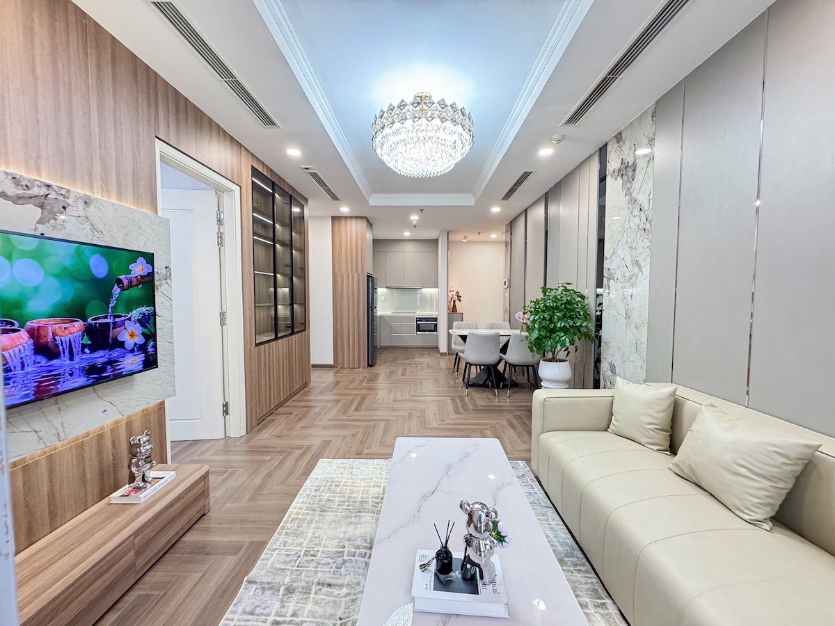 Căn hộ rộng 55m2 thuộc tòa thuộc Khu đô thị Vihomes Times City với đầy đủ tiện ích từ hồ bơi, thủy cung, Trung tâm thương mại, Bệnh viện, Trường học trong khuôn viên ● Căn hộ gồm 1 phòng ngủ chính, 1 Phòng khách, 1 Phòng tắm được trang bị nội thất cao cấp, có ban công. ● Phòng ngủ với giường Queen size và toàn bộ chăn ga gối đệm êm ái, với điều hòa không khí, giúp cho bạn những giấc ngủ ngon và sâu. ● TV thông minh kết nối WIFI, NETFLIX. ● Tủ lạnh, Máy giặt, lò nướng.