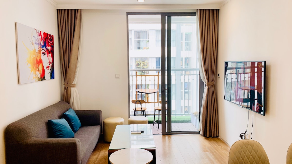 This beautiful apartment in a modern urban area is just a 20-minute drive from the Old Quarter, Hoàn Kiếm Lake, and close to the airport. The compound offers full amenities: swimming pool, sports centre, shopping mall, cinema, hospital, cafes, and restaurants. The apartment is designed for tranquility with greenery, books, art, and music. Ideal for those seeking peace during a business trip or holidays in Hanoi. Fully equipped kitchen; Hanoi-style family meals on request.