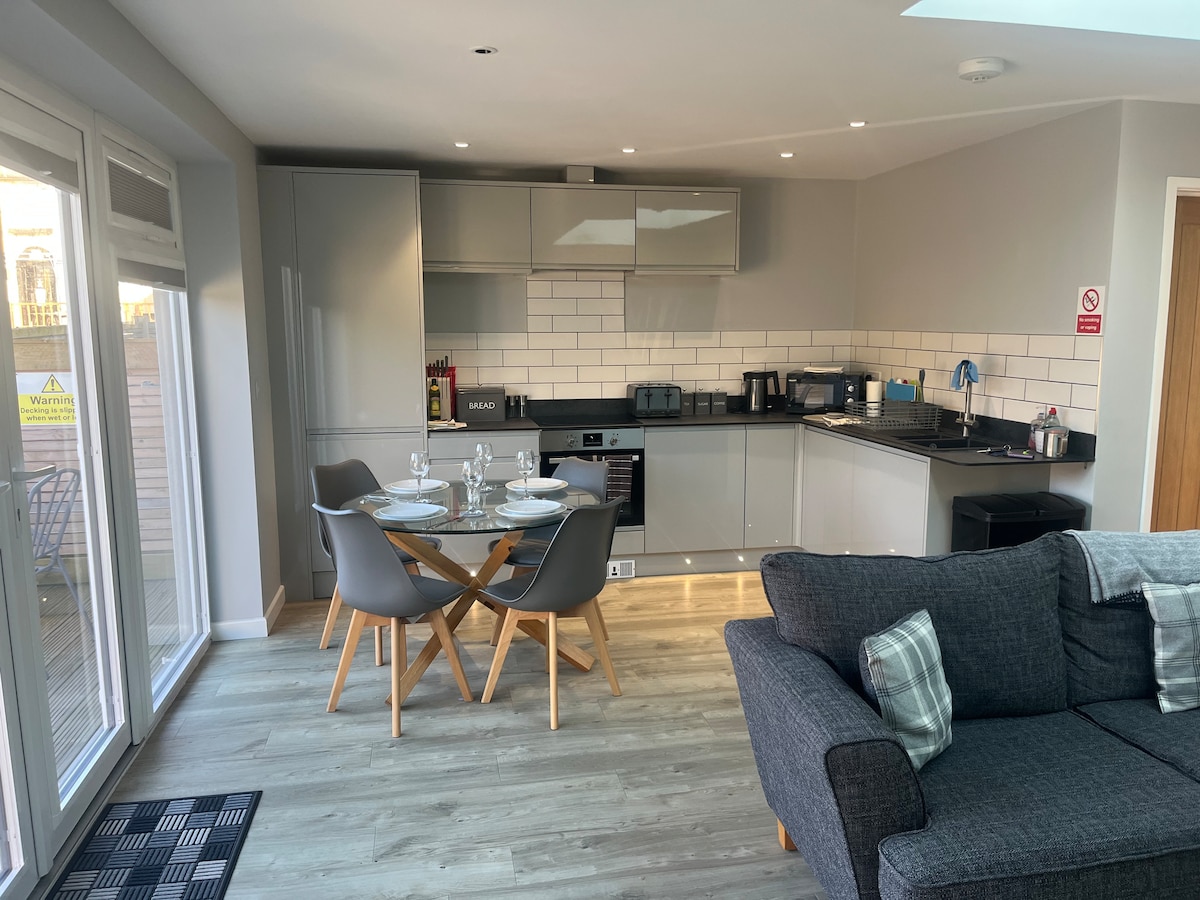 美丽宽敞、现代化、海滨、一卧室公寓。