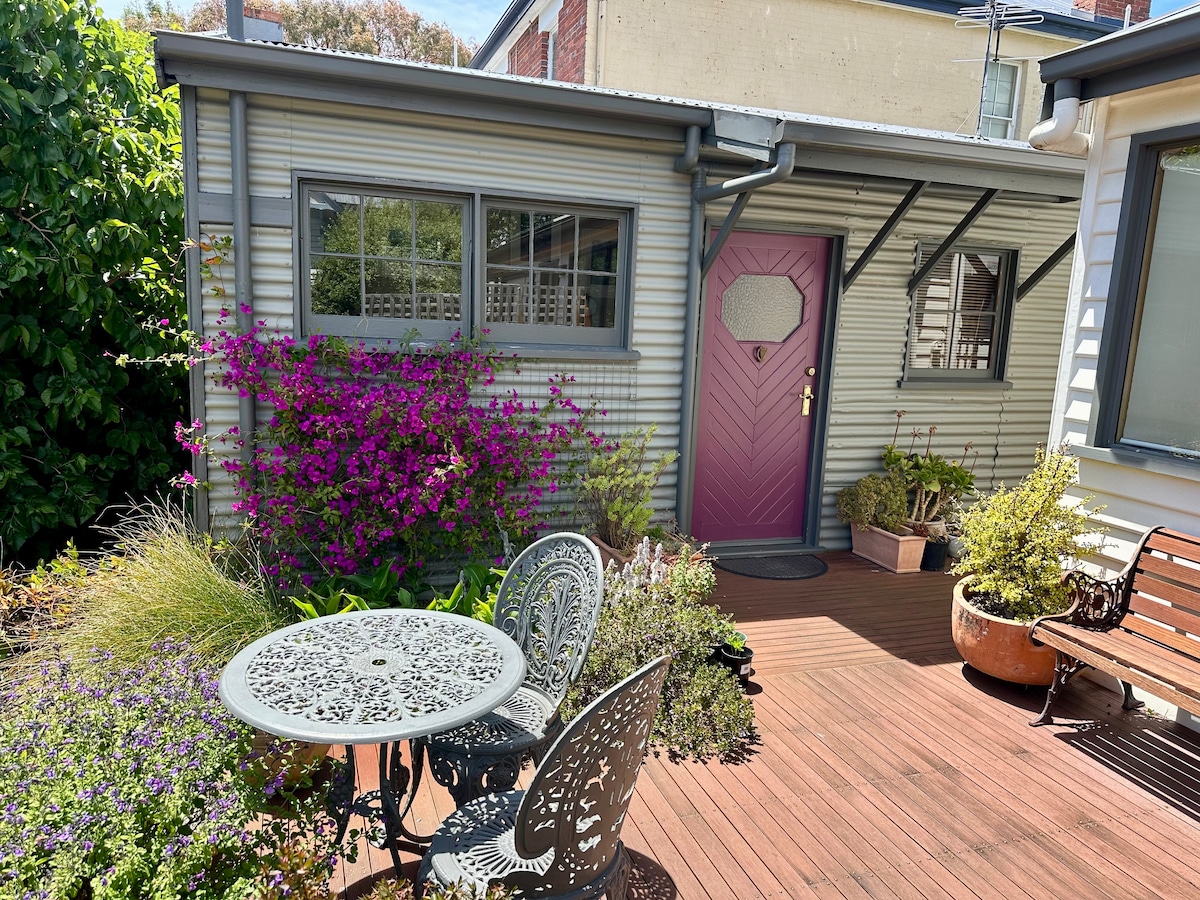 Relax at this unique and tranquil getaway in a beautiful private garden setting. Our romantic cottage is full of quirky charm and so comfortable, cosy and well equipped. The cottage is part of our 1880 heritage listed home and was once the old laundry. Marvel at the stunning views of Kunanyi/Mt. Wellington in all its ever changing light and moods from the alfresco dining area or living room. Located in the heart of historic South Hobart with abundant cafes, pubs and shops a walk away.