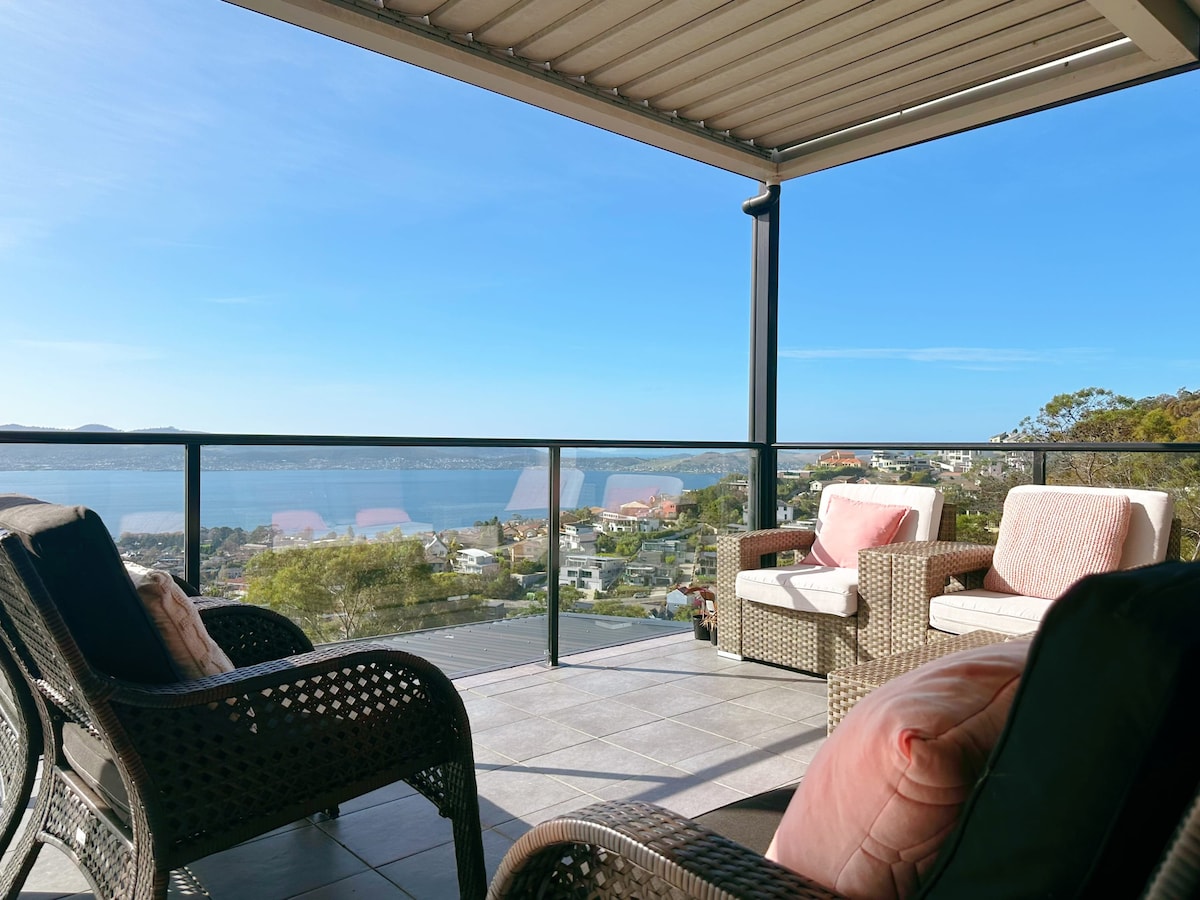 Enjoy one of the best river and mountain panoramas in Hobart from throughout the house. On Hobart’s Eastern Shore 15 mins from airport and 12 mins to CBD, your stay backs onto a flora park with bush and garden views. Living areas include a front deck and a glass covered atrium which capitalize on the views of Derwent Estuary and Mt Kunanyi. The backyard is tastefully landscaped with a relaxing garden, gazebo and outdoor furniture. The house has modern electrical apps and comfy furniture.
