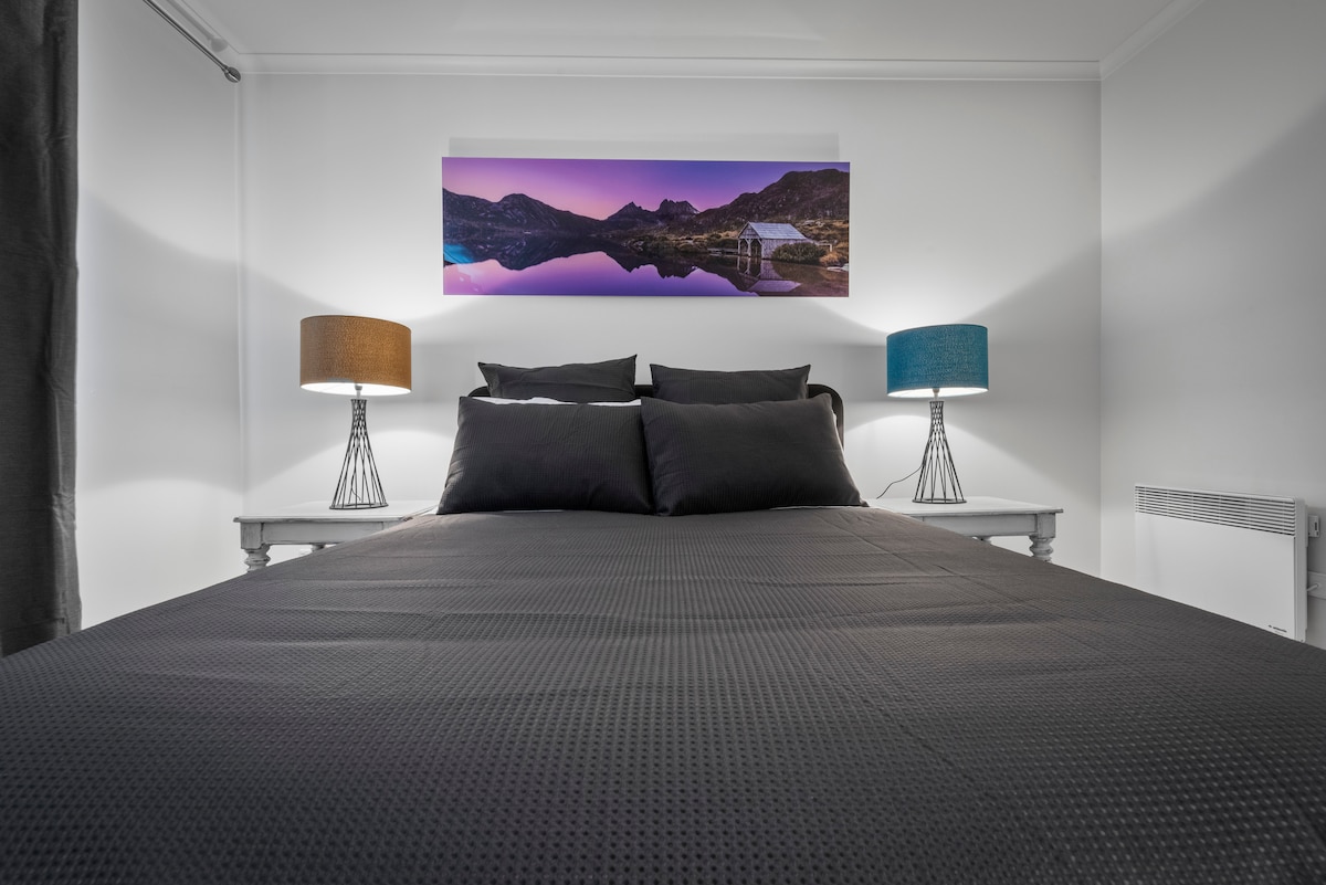 Scan the QR code in photos for a full video tour! Boutique 1BR hideaway for couples, right on the rivulet. Just 2km from the CBD, this quiet crash pad is ideal to explore the city, MONA and Salamanca. No cleaning fee. Relax in a brand-new queen bed, enjoy leafy views and cool styling, and start your day with complimentary Nespresso coffee. Ultrafast Starlink Wi-Fi with Netflix, Disney+, Binge & Stan. Clean, comfy and close to everything.