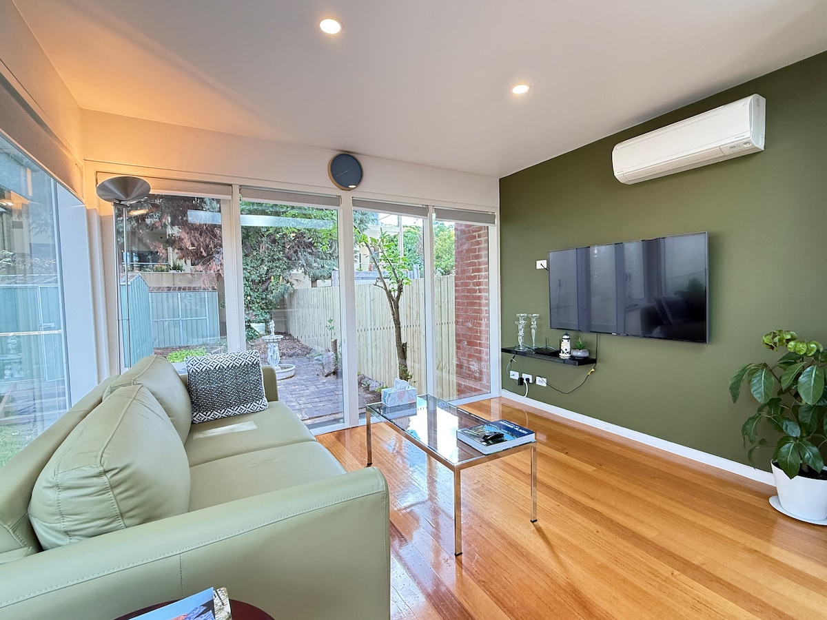 The modern studio is nestled in a luxurious garden providing a sense of serenity at the rear of our 130-year-old heritage house. Warm up next to the wood-fire after a short stroll to the local restaurants, bars and cafes located in North Hobart. Situated within 1.9km of the CBD and 2.8km to Salamanca waterfront, there is a bus stop at the end of the street. A microwave, toaster, kettle, coffee maker and fridge are provided for your convenience, as well as a BBQ on your private deck.