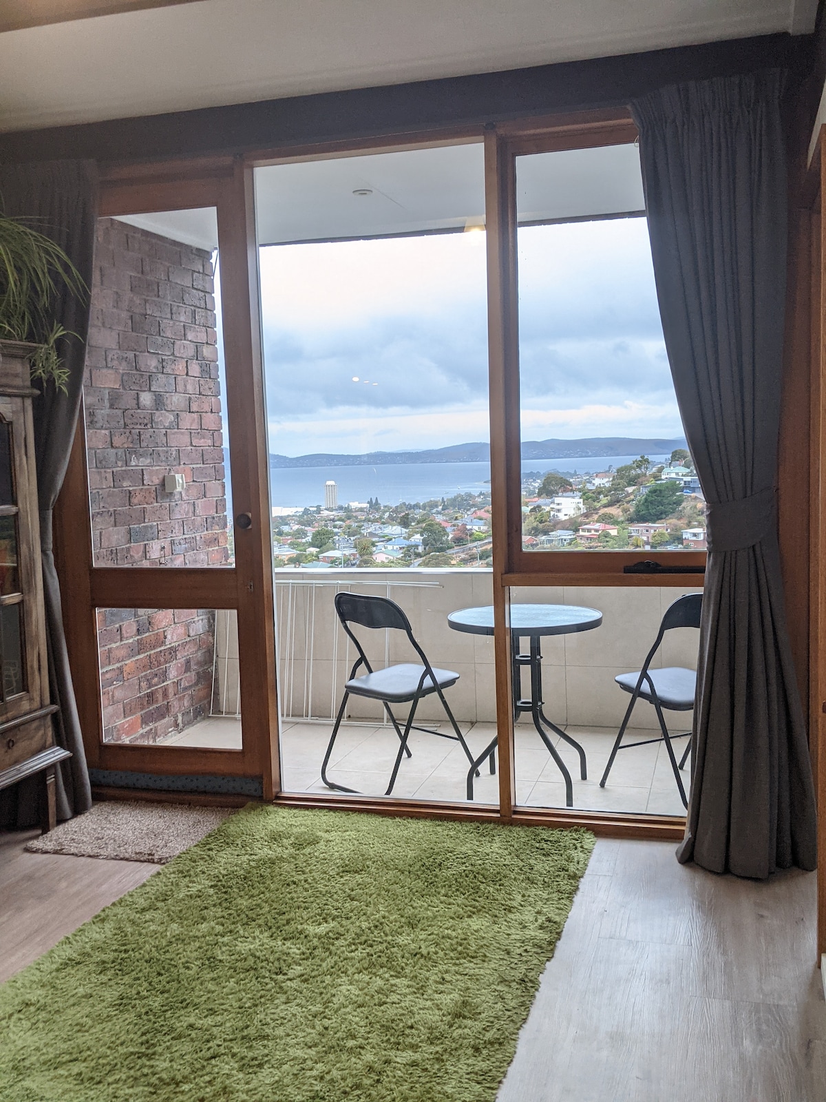 We LOVE pets! Hilltop heaven, Lindisfarne Hobart's best kept secret, ultra quiet, picturesque, green waterside suburb, 8 mins to city across bridge by car: modern quirky private 1 bed s/c apt (+ Q sofa bed for 2 children /1 adult) fully equipped kitchen,laundry, free parkingflat 3km Bush walk @ rear, waterside walks 100 m away, Incredible views city,mountain,water. Enjoy super quiet,warm, relaxing comfort & privacy, stunning vista, silence, birdsong, relax & rest. airport 12 mins,MONA 20 mins