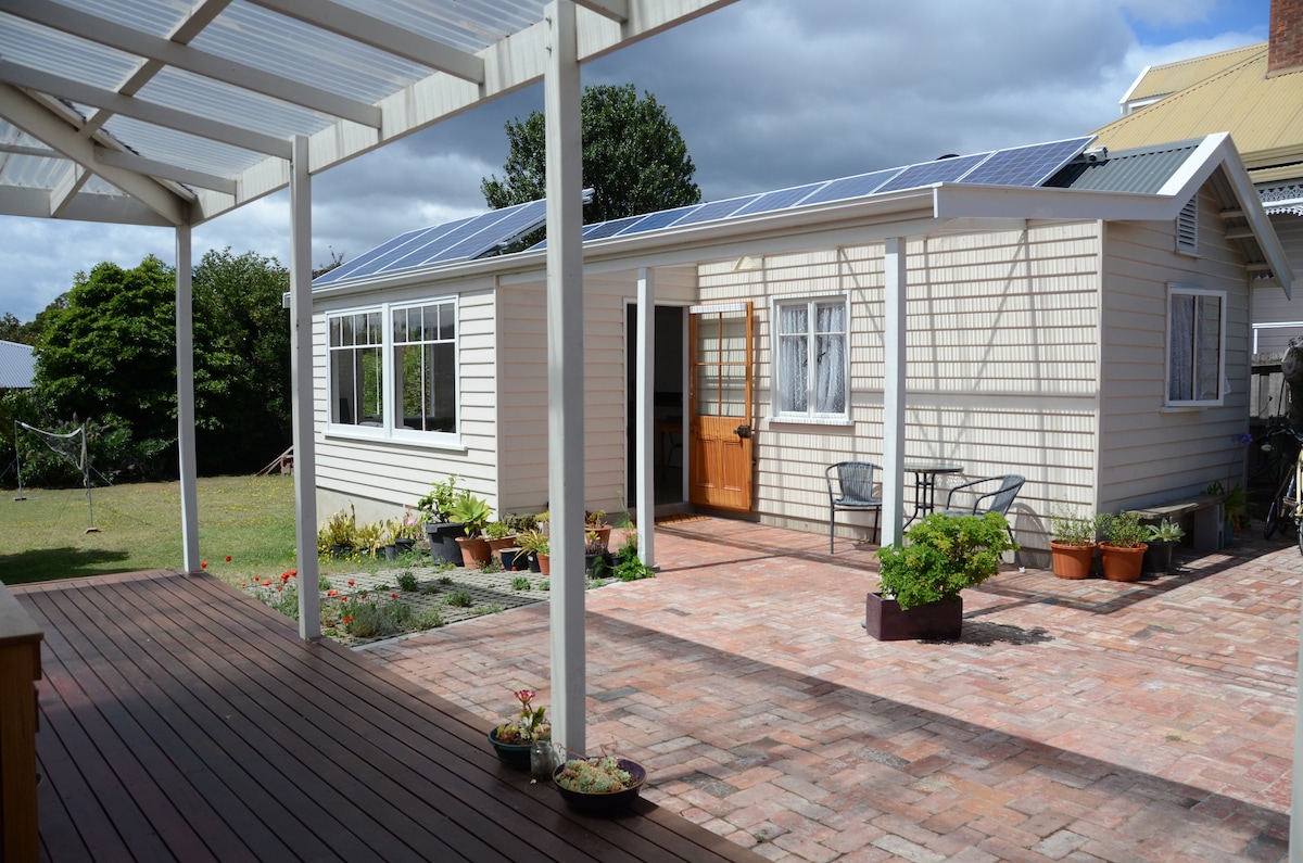 Sunny, private, warm and comfortable. Located within 3 Km of Hobart CBD. 10 minutes by car to MONA or half hour by bicycle. Spacious open plan with level access and a comfy queen size bed. We are very flexible on check in and out times, just depends on bookings.