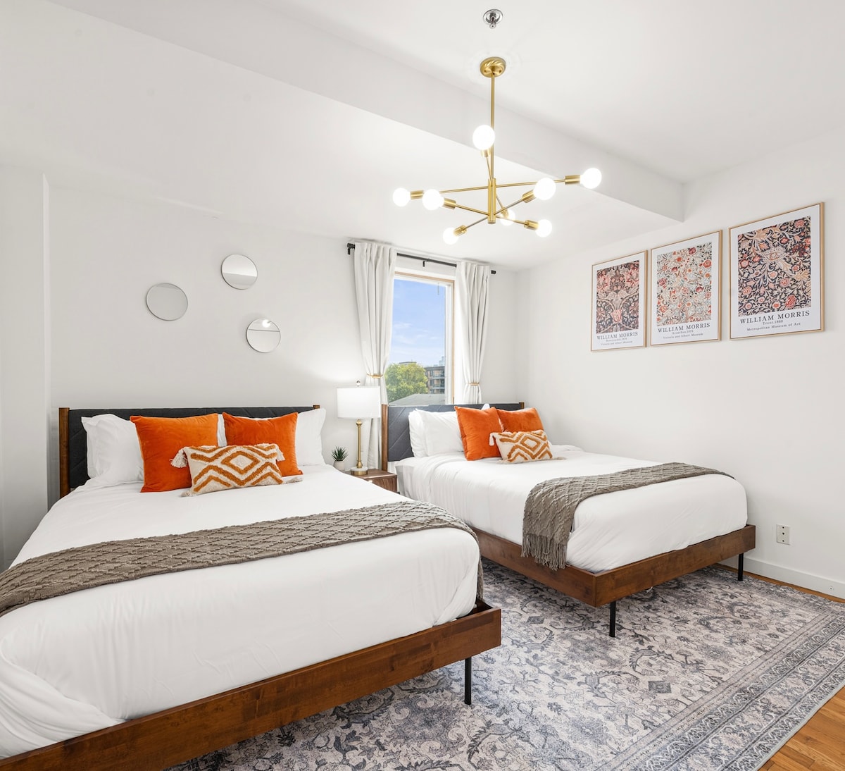 Step into a stylish, spacious flat designed for both relaxation and productivity. Spanning 1200 sq ft, it’s perfect for families, friends, or remote workers. Enjoy a sleek kitchen, modern gym, peaceful outdoor areas, and a rooftop deck with stunning NYC views. Discover the energy of Hoboken with shops, cafés, and dining just steps away. Fast public transit gets you to NYC in 15 minutes. Guest Services ensure a seamless stay filled with comfort, convenience, and unforgettable style!