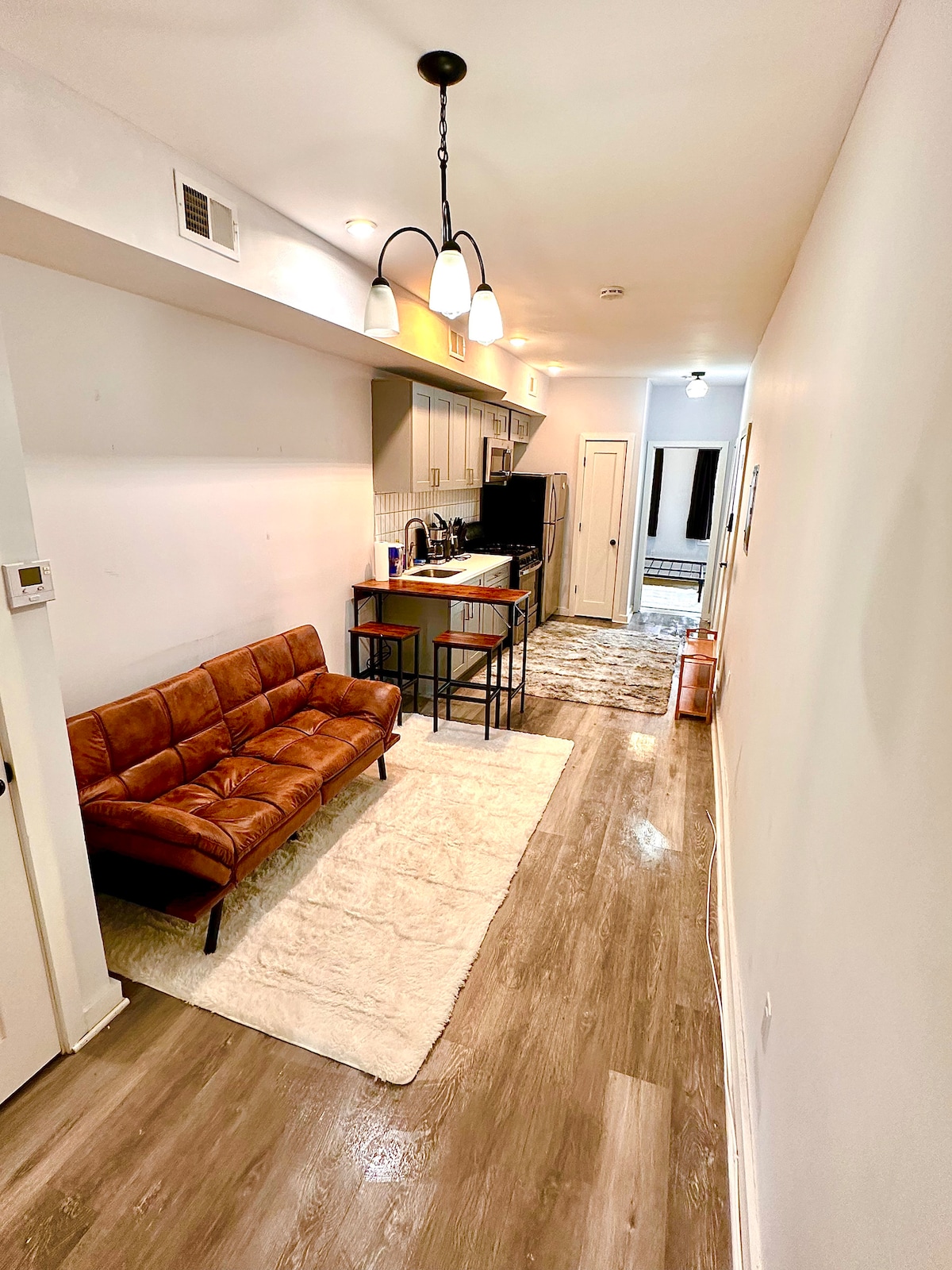 This charming and carefully restored 1901 brick row house apartment is perfectly located on a tree-lined street in downtown Hoboken. Featuring your own private keyless entry, spacious layout with designer touches, fully equipped kitchen, private patio, and modern amenities such Wi-Fi, Alexa, and smart TV. If you are looking for a short getaway and appreciate upscale style, this is the perfect place to relax and refresh. For extended stays, settle in & experience your new home away from home.