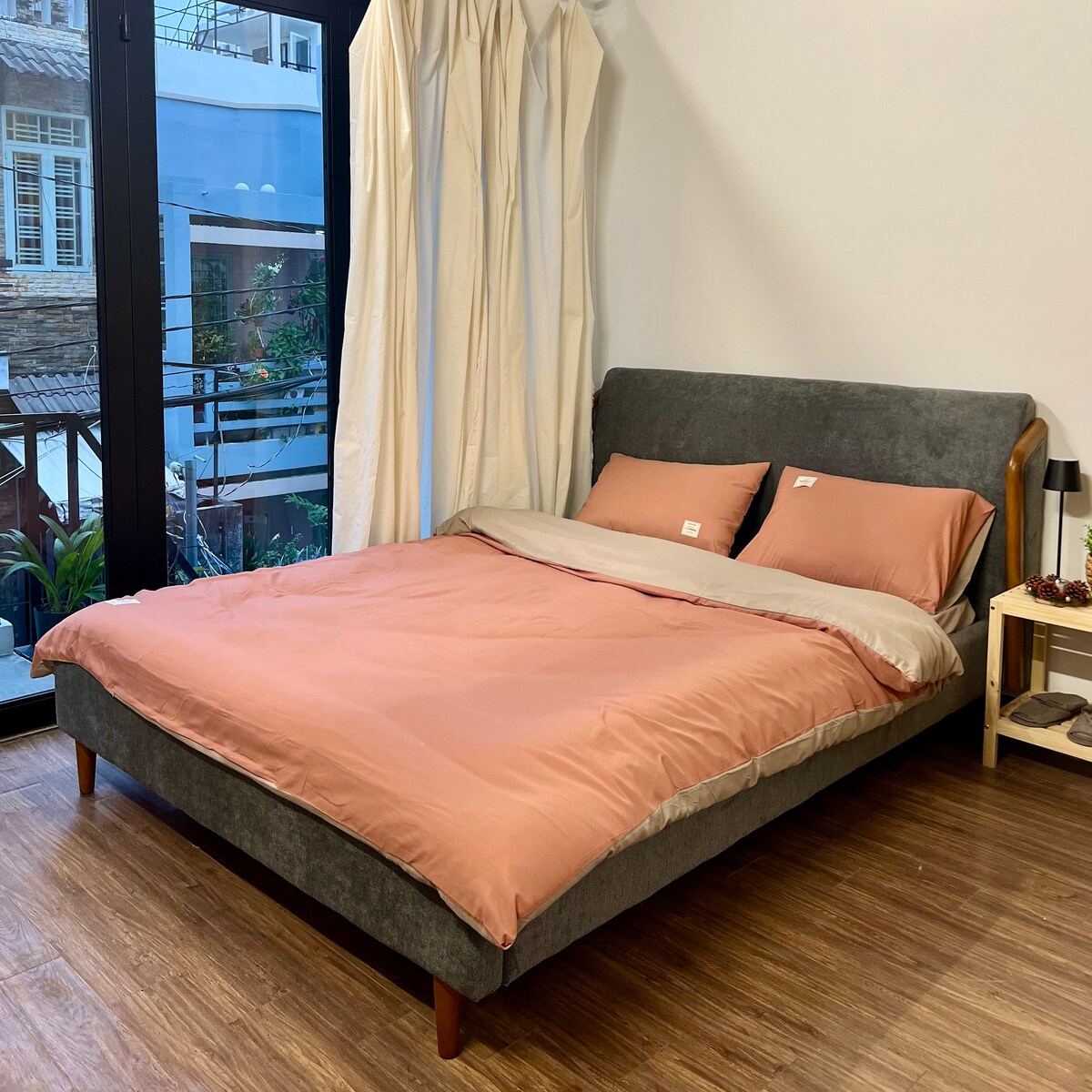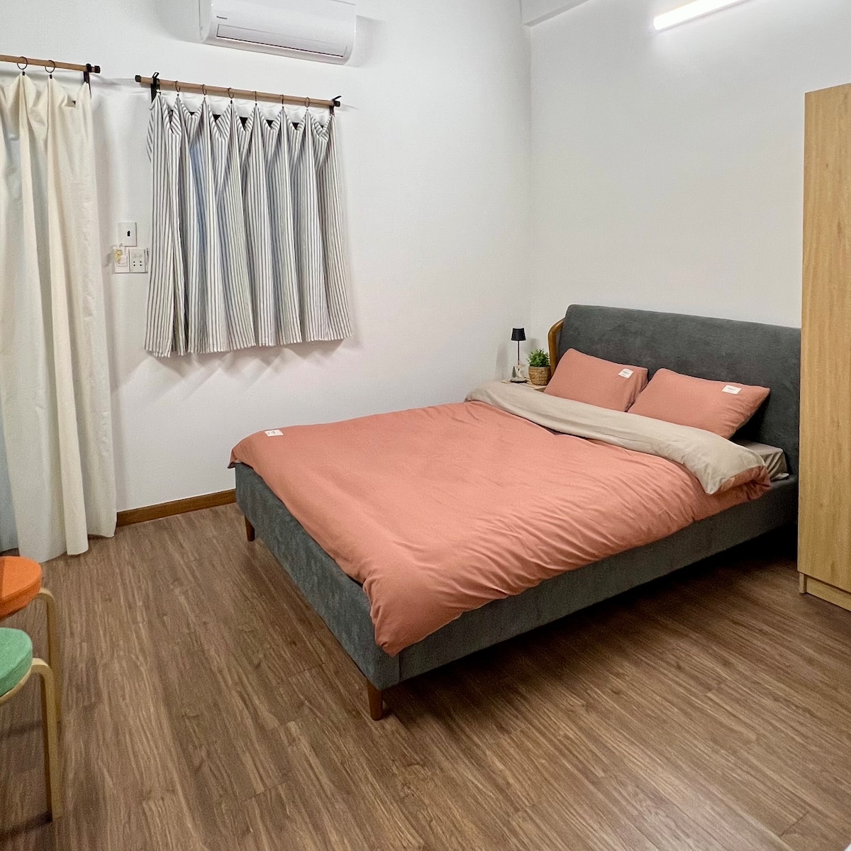 Room 3 of Anh's House located separately on the 1st floor with a private balcony. This cozy room is connected from the front yard with a private access staircase. So if you stay in this room, you will enjoy your world here. Especially, the room is full of natural light with the floor-to-ceiling wide glass doors. Sunshine will wake you up every morning.