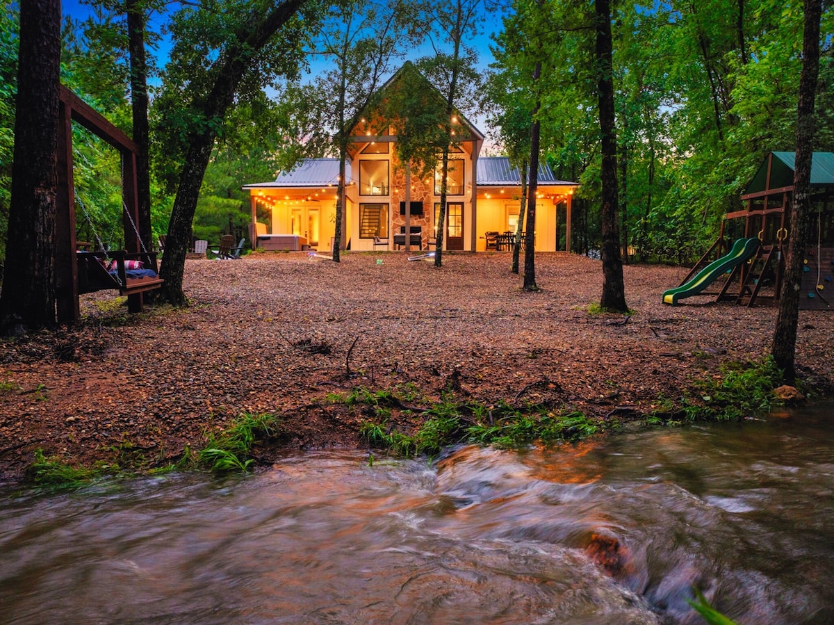 New Build in Eagle Mountain! A modern, luxury build accommodating up to 8 guests, WIFI, hot tub, fire pit, located on a creek. The Perfect Getaway, that just like the stone promotes relaxation, balance and inspiration, you connect with nature on a creek while enjoying one and 3/4 wooded acres in a serene and tranquil space, where you can appreciate the beauty of Hochatown. Moonstone Creek is in a remote yet convenient location with easy access to all Hochatown attractions. Eagle Mountain is