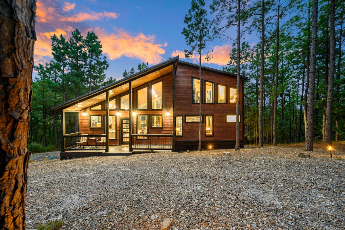 This is Timberstone—a newly built modern luxury cabin conveniently located in the heart of Hochatown that provides a perfect retreat for families and friends. We offer a space complete with amenities for all and crafted with a serene blend of architectural elements and tasteful modern minimalist finishes that creates a rejuvenating sense of tranquility. Located on a quiet lot of wooded pines that is central to all the area has to offer with easy, flat roads leading to and from it.
