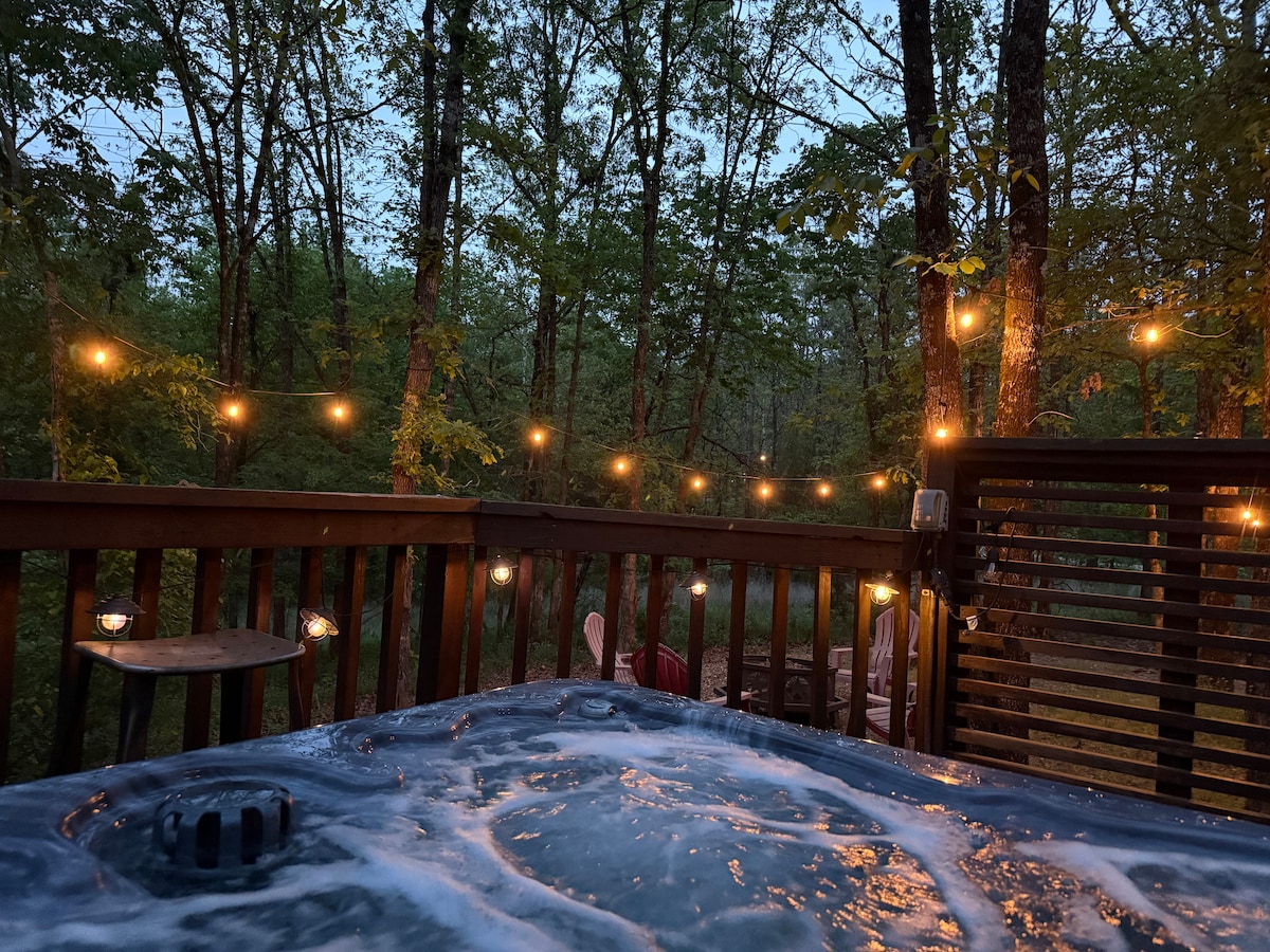 Escape to 282 Timbuktu Cabin, a private luxury couples’ retreat The bedroom features a plush king-size bed, soft linens that creates the perfect atmosphere for a peaceful night’s rest. Enjoy a spa-style bathroom with a soaking tub and rain shower. In the fully stocked kitchen, you’ll find everything you need to cook a romantic dinner for two. Cozy up by the indoor fireplace, unwind in the hot tub, or sip coffee on the deck. Perfect for honeymoons, anniversaries, and romantic getaways.