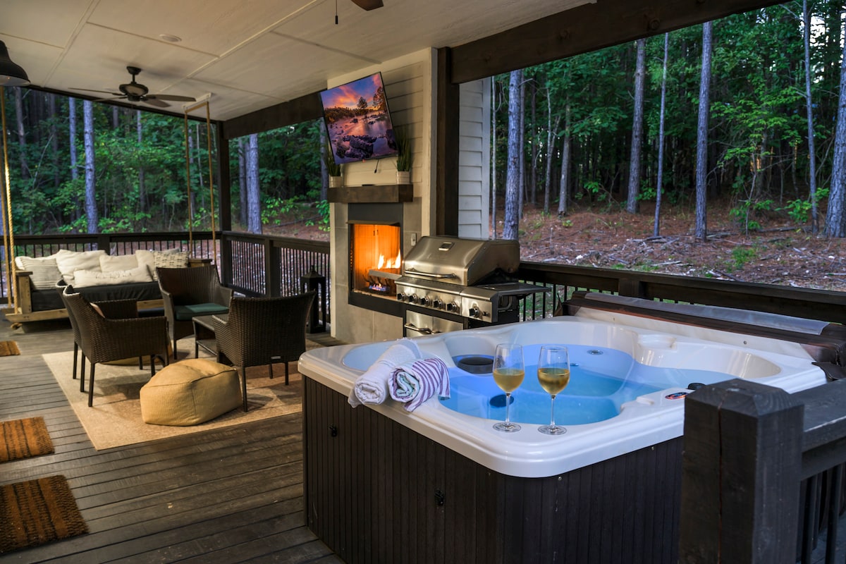 Make Memories at "LEATHERWOOD" for couples or a small family! ☆ Private hot tub ☆ BBQ grill ☆ Private outdoor kitchen ☆ Barbecue utensils ☆ Outdoor furniture ☆ Fire pit ☆ Patio or balcony ☆ Private backyard ☆ Single level home ☆ Coffee maker: Keurig coffee machine ☆ 50 inch HDTV with Amazon Prime Video, Disney+, Netflix, Hulu, Roku ☆ Books and reading material ☆Private entrance ☆ Free parking on premises ☆ Board games ☆ Fast, free Wi-Fi ☆ AC & Heating- split type ductless system