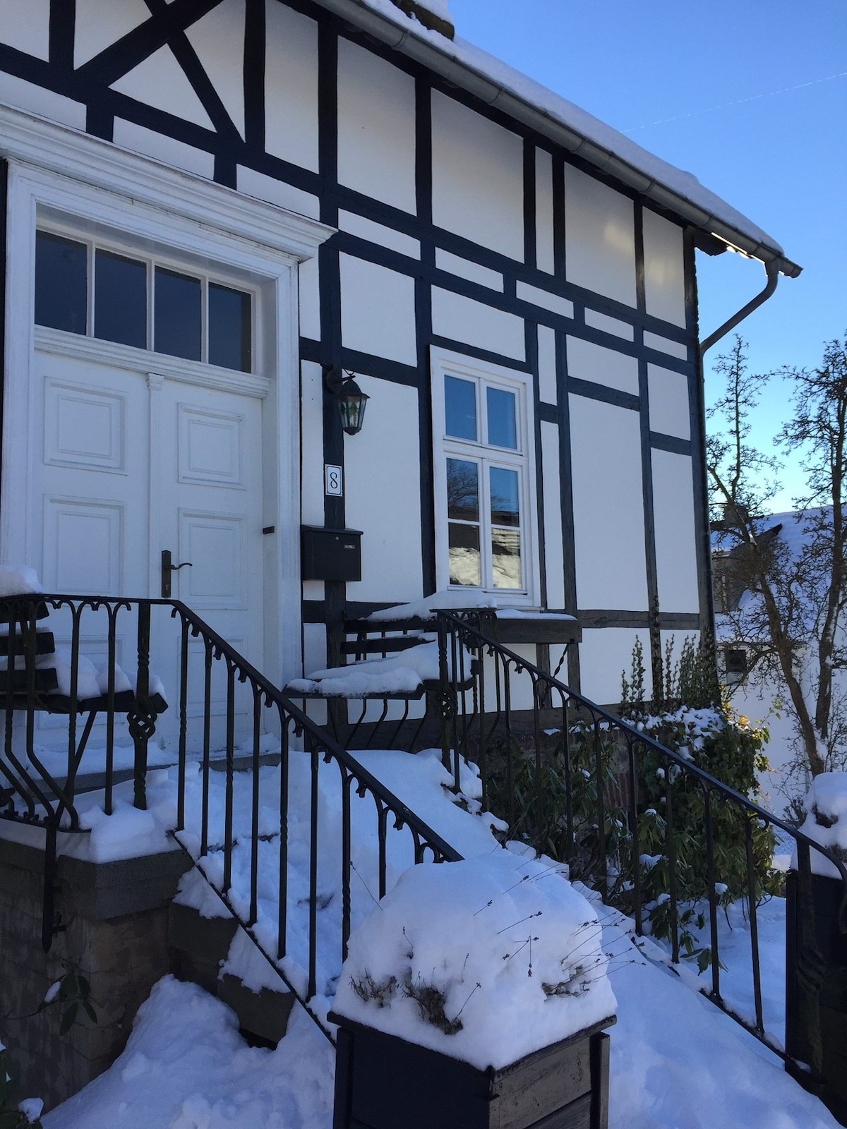 This historic 19th century house with modern interior (6-10 Guests) is part of the Bruchhausen Castle Estate with a view on the Castle and the park. The house is very bright, has a private garden and terrasse as well as outside parkingspace for two cars. From the house you can see on top of the mountaine the 4 massiv rocks "Bruchhauser Steine".