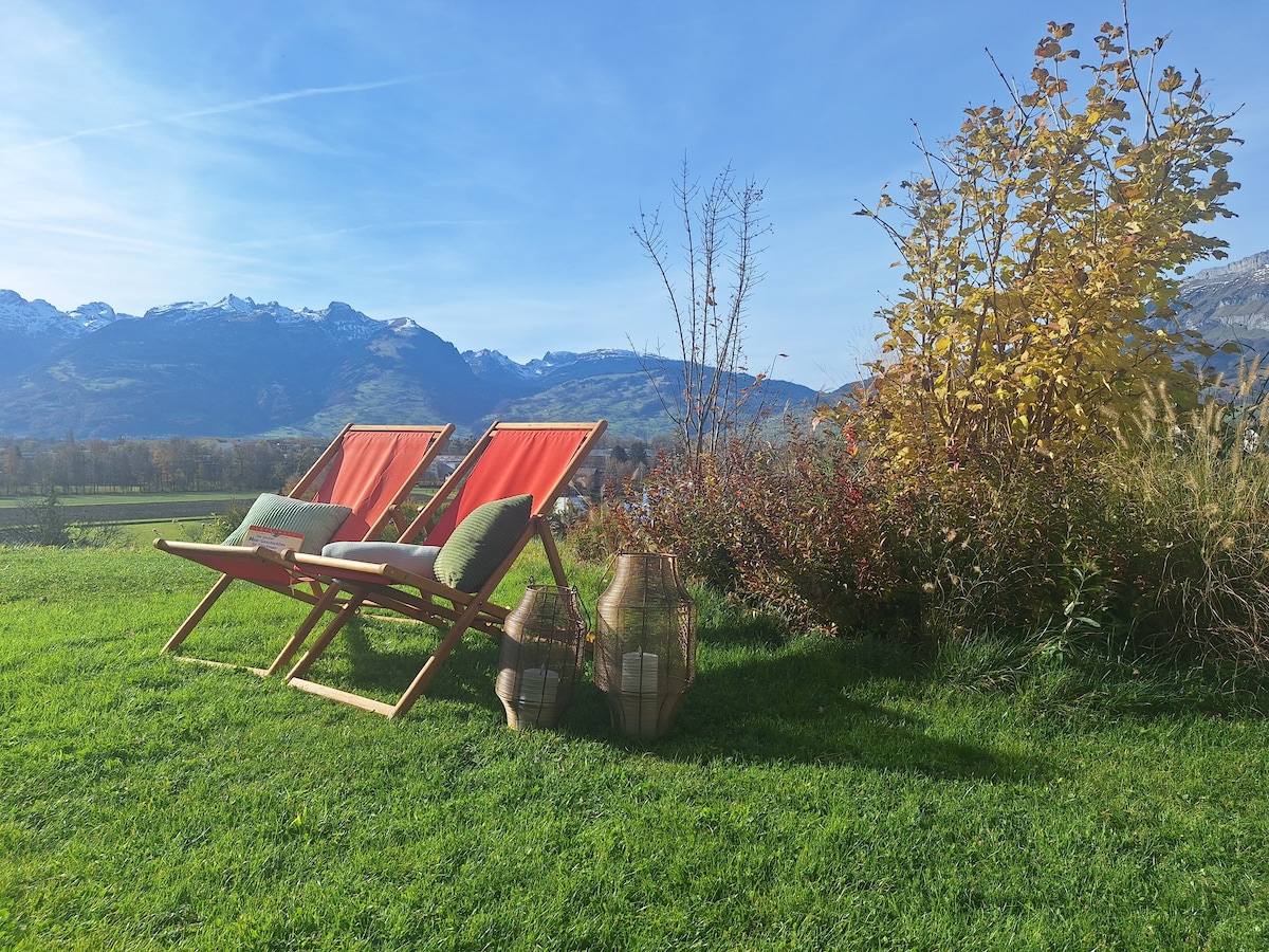 Urlaub in den Alpen Unsere neu renovierte Ferienwohnung in den Bergen (1000 m ü. A.) stellt für jede/n eine warme und mit viel Liebe zum Detail eingerichtete Bleibe zum vernünftigen Preis dar. Im selben Haus gibt es noch eine weitere, komplett getrennte Wohnung, die ebenfalls gemietet werden kann. Die Wohnung selbst ist von außen schlecht einsehbar. Der Ausblick auf die Schweizer Berge ist fantastisch. Abendrot geniessen oder am Beamer einen Film geniessen.