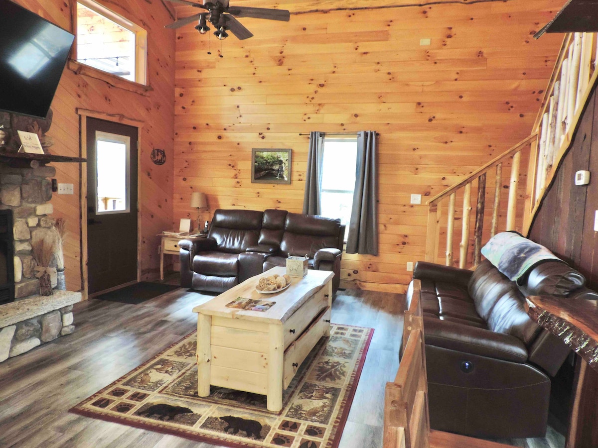 Escape to the breathtaking beauty of Hocking Hills with The Outlook, our cabin that promises an unforgettable retreat. Nestled amidst nature's serenity, this cabin offers a fusion of rustic charm and modern luxury. High speed Wi-Fi!! No cleaning fee!! The cabin boasts a beautiful kitchen, loft queen bedroom, pull-out queen bed in the living room below. Outdoor propane grill, brand new hot tub, and a stone outdoor fireplace.