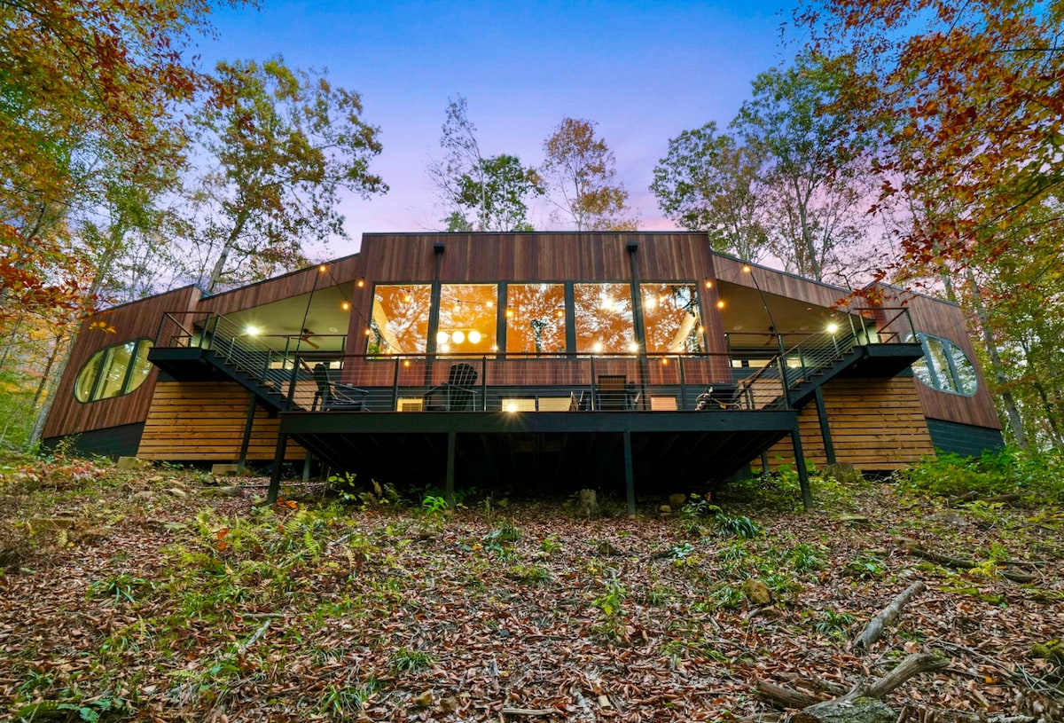 Romantic Escape in the Heart of Hocking Hills just minutes to Old Man’s Cave, Ash Cave, Cedar Falls, and Conkle's Hollow. This custom Studio Cabin sits on 13 Wooded acres and features Wraparound Windows with Hillside views out the back and Treehouse-like views out the front. Ideal for couples seeking a Rustic and Cozy getaway. This Modern cabin is a family's private weekend Retreat that they make available for guests to enjoy. Not child safe and No Smoking or Animals allowed.