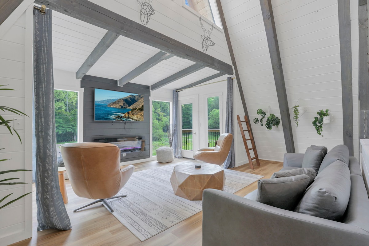 The retreat at Fox Lake is a newly constructed 1+ bedroom house featuring a private back deck and hot tub! This home has a bedroom with a king-sized bed and an additional room with a fold-out futon. Features include eclectic art, reclaimed materials, glass enclosed gas fireplace, Starlink high speed wifi, on-site parking and direct access to Fox Lake and more! This is the perfect retreat for a couple, a few friends or small family. The vibe is earthy, textured, cozy and modern.