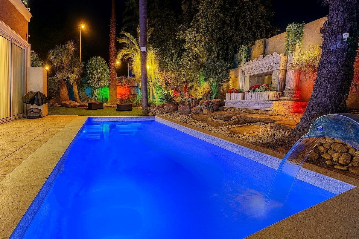 豪华私人别墅,带恒温泳池,6间卧室,