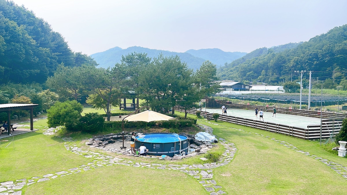A private detached country house in Yangpyeong offering the best of both worlds—peaceful natural surroundings and easy city access. Enjoy open views by day and calm nights. The home features a spacious garden and private BBQ area ideal for families or small groups. Guests have exclusive use of the entire two-story house with freshly washed bedding for every stay. Yangpyeong Station, downtown, and Lotte Mart are just a 5-minute drive away, with nearby parks for relaxing walks.