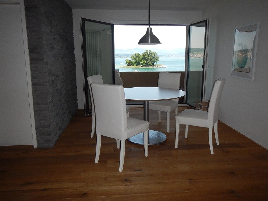Your stylish holiday paradise at the south-west shore of Lake Zurich with perfect lake & island view and good train connections to Zurich (22 min.), Lucerne, etc. Ideal for couples, families and business travellers. Sleeps max. 4 adults / 2 adults + 2-3 kids Fully equipped kitchen (rice cooker also available -> please ask). Washing machine + tumble dryer available. For wheelchair users: there is a lift (-> barrier-free access)
