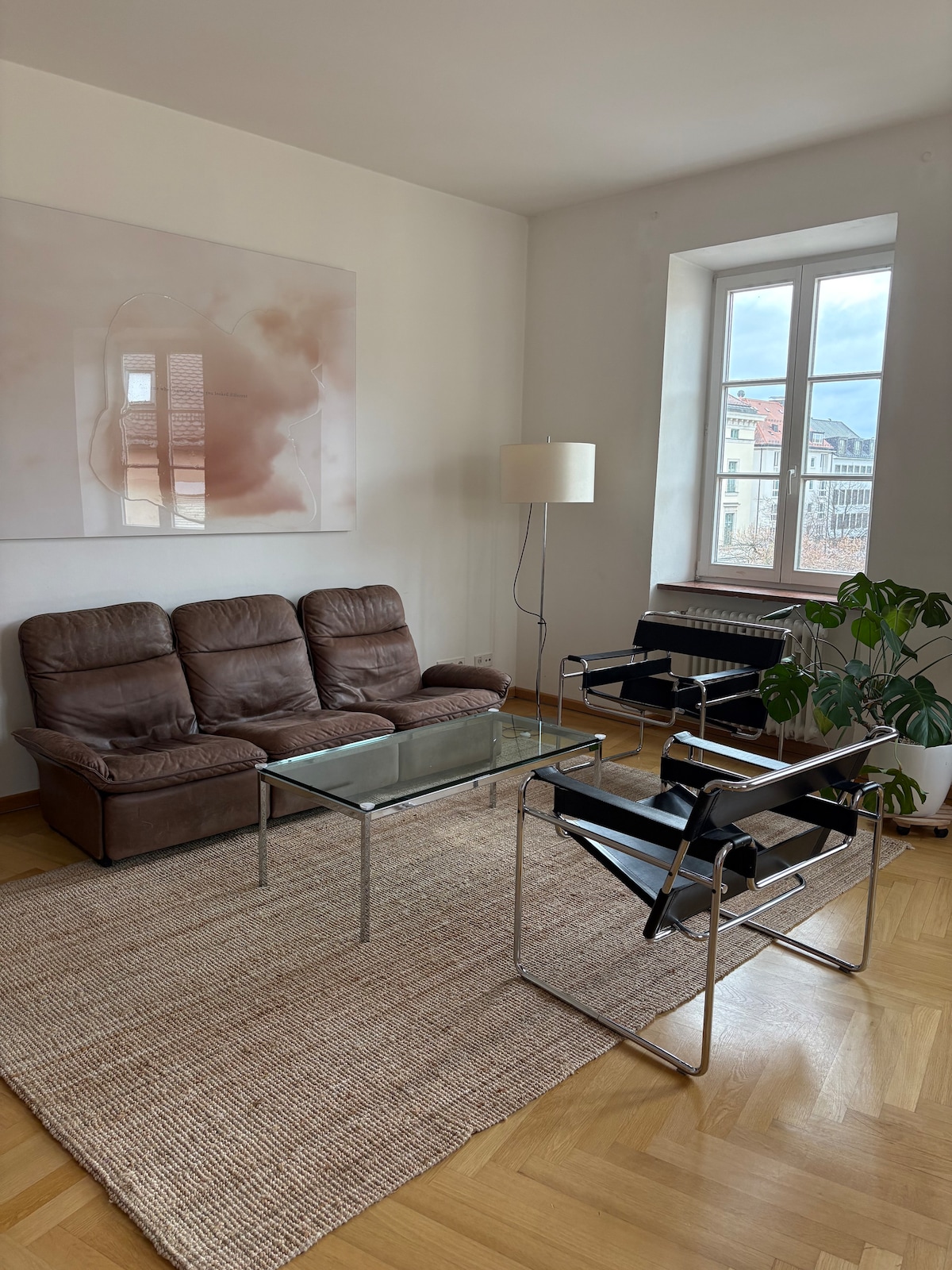 5 min. walk to central station, Königsplatz all art museums/Pinakotheken/expositions/universities TU/LMU , Supermarkt, Restaurants in walking distance! City Hall , Oper , Hofbräuhaus about 20 minutes to walk or 5 station with Tram 21 in front of of house!. You will love this spacious apartment because of it`s generosity and terraces for east and west sun, and good location to many restaurants in close neighborhood.