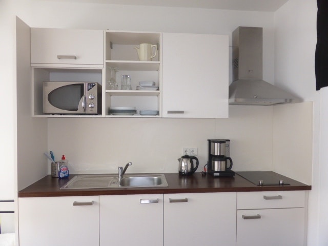 Wir vermieten eine moderne und helle 2,5-Zimmer Wohnung mit großer Terrasse. Die Wohnung ist 55 qm groß und verfügt über einen separaten Eingang. Die zum Wohnzimmer offene Küche ist neuwertig und voll ausgestattet. Es gibt ein Schlafzimmer mit großem Doppelbett und ein Arbeits- bzw. Schlafzimmer mit Queensize-Bett. Alle Zimmer mit Echtholz-Parkett und dreifach verglasten Fenstern. Modernes Duschbad. Kontrollierte Wohnraumbelüftung. Freies WLAN. 60 Zoll Flatscreen-TV mit Kabelanschluss im WZ.