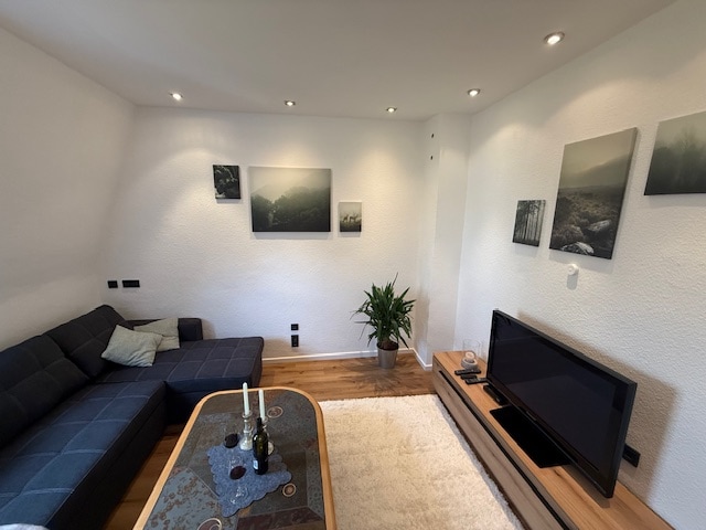 Charming two-bedroom apartment in the historic center of Hofheim-Lorsbach for up to 5 guests. The perfect retreat for exploring Lorsbach's picturesque half-timbered houses, hiking in the Taunus mountains, or taking a trip to Frankfurt (approx. 25 minutes by train to the main station). The apartment features high-quality box-spring beds, a living room with a large, fully equipped kitchen, a spacious bathroom, a private terrace, fast Wi-Fi, and private parking in the courtyard.