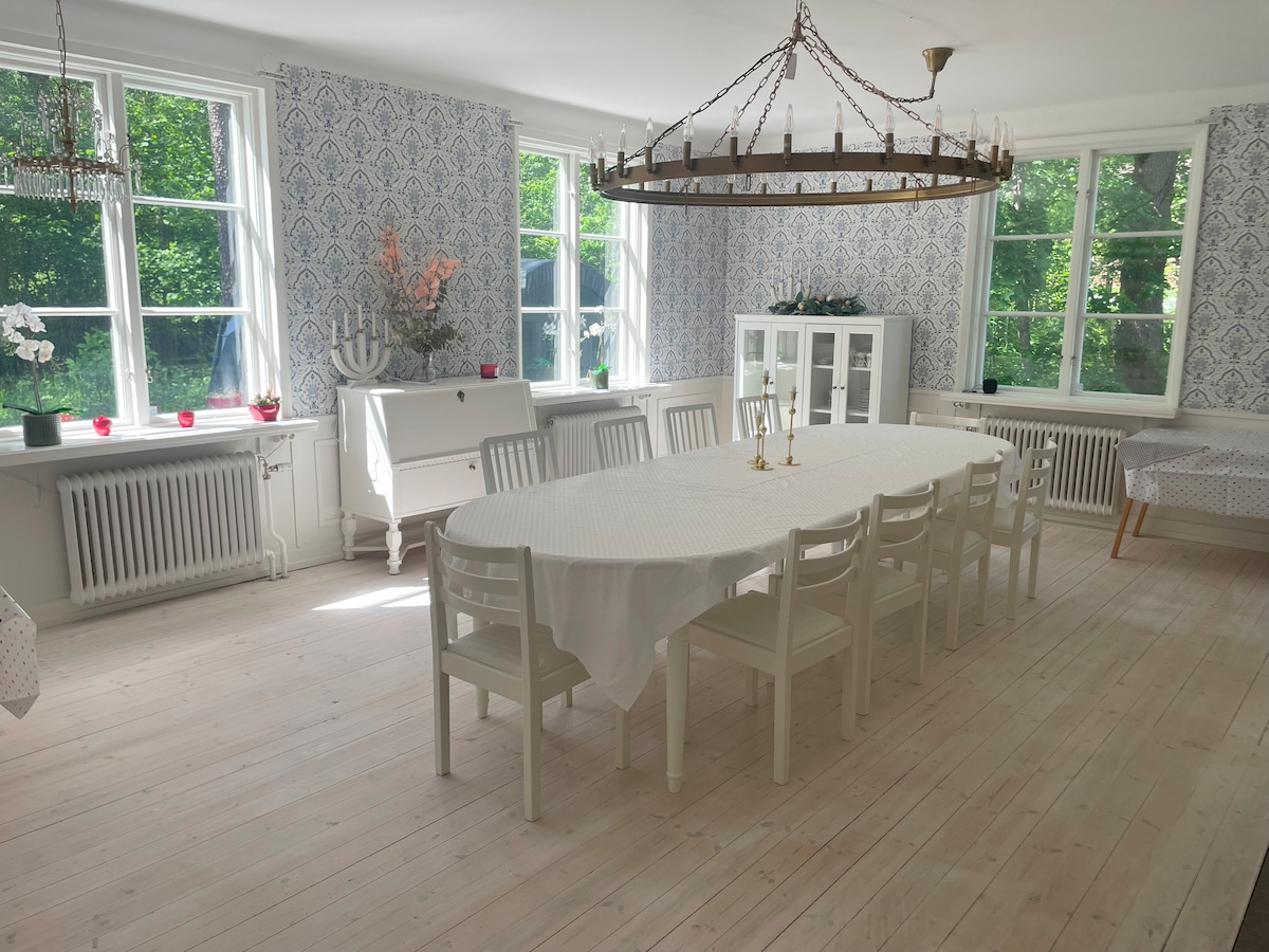 Stor villa med spektakulär sjöutsikt i populära Stjärnsund. Unikt inrett hus med det lilla extra. Två stora verandor i båda riktningarna, där du kan njuta av morgonsol som kvällssol och en fantastisk solnedgång. Det är mindre än 50 meter till bryggan med en vedeldade bastu och endast 300 meter till närmaste badstrand. Båt med elmotor samt kanoter finns till förfogande. En timme till både Romme Alpin och Kungsberget och gillar du isvaksbad så mycket som vi gör, står vaken öppen hela vintern.