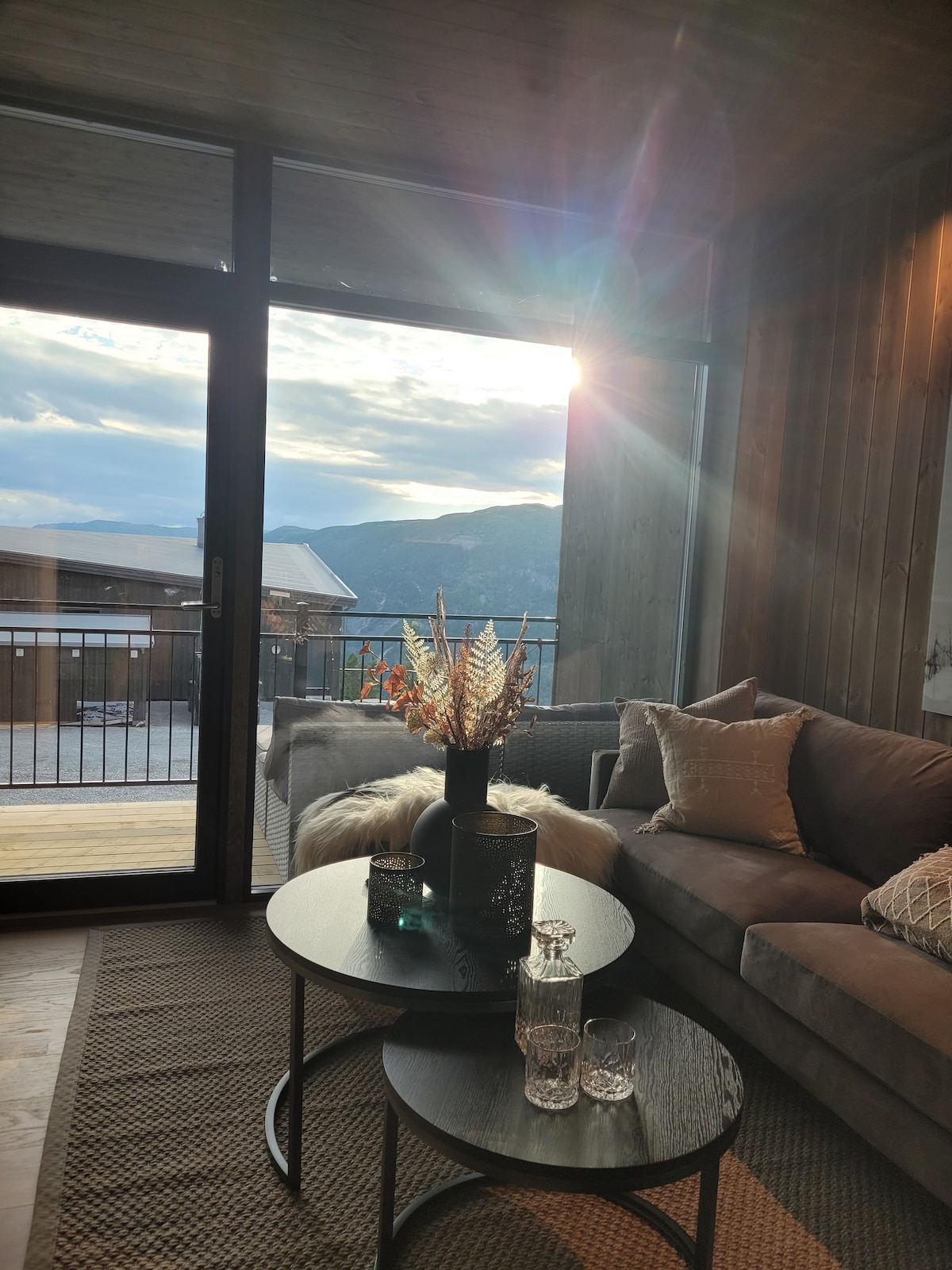 Newly built mountain lodge (2022) in massive wood. The apartment is inviting and cosy, with interior in Scandinavian style. You will find all the comfort and equipment you need to relax & enjoy delicious food and company after an active day! Have your morning coffee outside in the sun, overlooking the mountain tops. Light a fire, enjoy the views from the sofa & makes use of our books or boardgames. Maybe you prefer watching a movie on The Frame? Have a good night sleep in the fresh air!