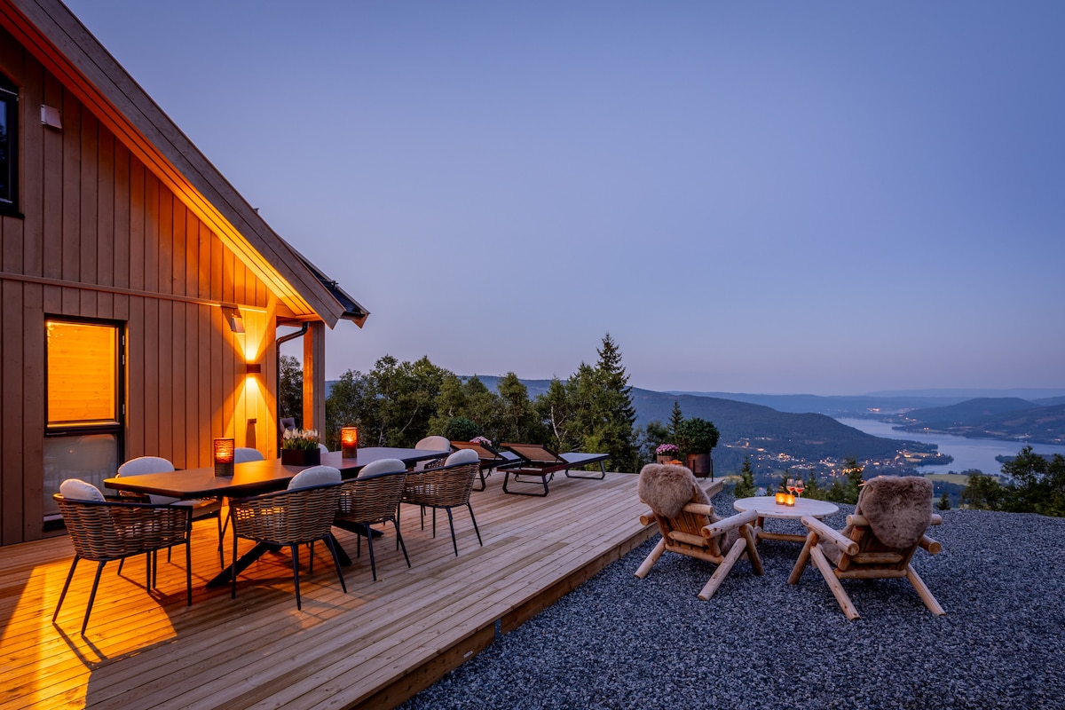 Our favourite Pink Fjord Panorama cabin is a cozy, year-round retreat, perfect from snowy winter days to bright summer evenings - dogs welcome too. Enjoy pink sunrises, peace and quiet, and a scenic private sauna with breathtaking views. Located only 1.5 hours from Oslo Airport, the cabin overlooks the fjord and offers opportunities for golf, skiing, hiking, mountain biking, swimming, and spa experiences.
