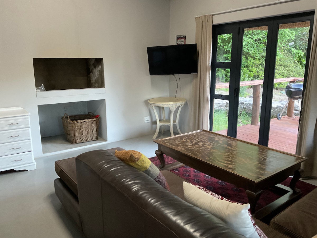 Escape to our charming thatched cottage, nestled in the heart of Hogsback’s natural beauty. The cottage features a beautiful wooden deck, perfect for relaxing among the trees and birdsong. Inside, you’ll find two comfortable bedrooms (one open-plan), a cosy lounge, a bathroom, and a welcoming indoor braai area – ideal for relaxed evenings in any season. The space is quiet, peaceful, and thoughtfully designed for guests looking to unwind and reconnect with nature.