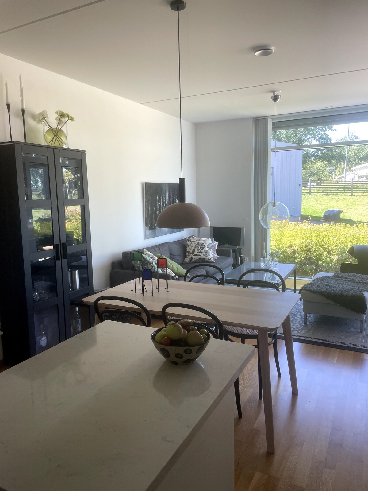 Härligt nybyggt hus 1 av (3) på området med öppna ytor. Bostaden erbjuder altan mot sjön med grillmöjligheter och soldäck. Det finns en täljstenskamin i huset som går att elda i. Gäster har tillgång till egen brygga samt roddbåt, Ryds 390 Finns även en varm eluppvärmd badtunna att tillgå med 39 grader året om (obs! Inga bubblor endast rening) Gäster tar med egna sängkläder och handdukar samt kol och tändgrejer till grillen.