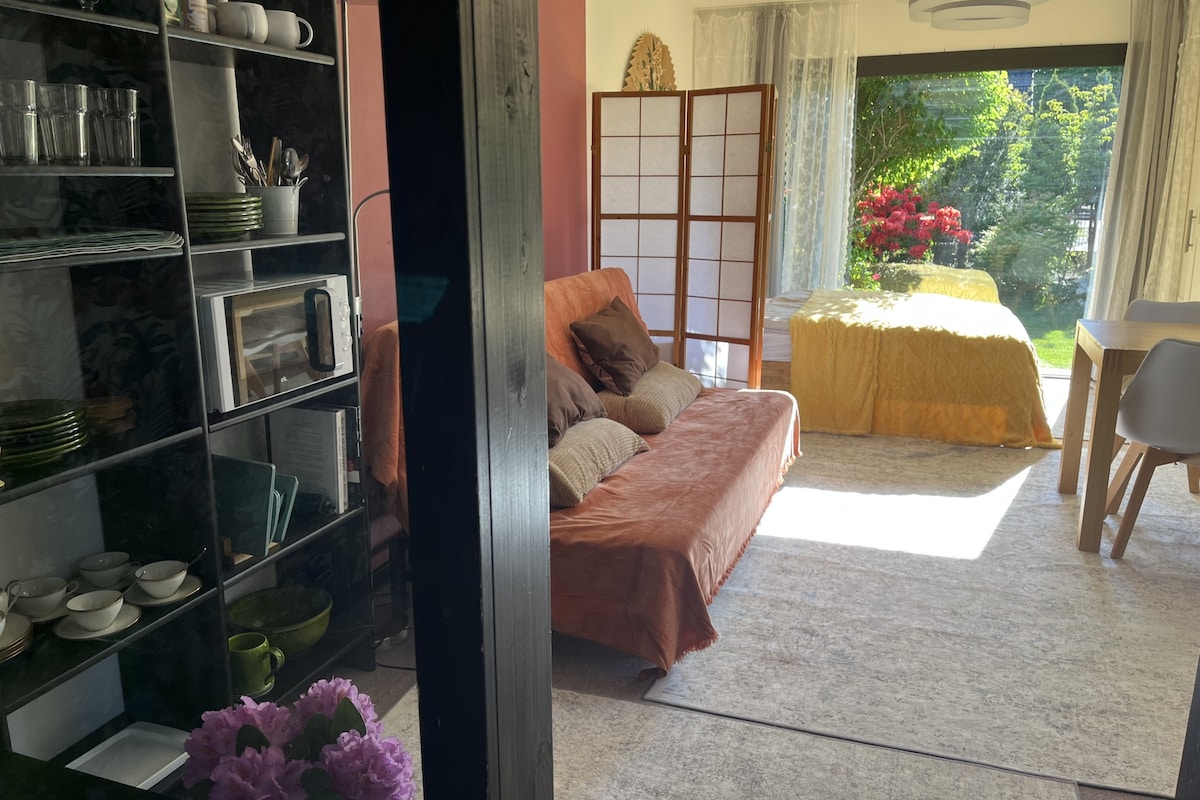 Diese moderne Einzimmerwohnung bietet alles, was Sie für einen angenehmen Aufenthalt benötigen. Sie ist ideal für Paare, aber dank des Schlafsofas können wir Ihnen bei Bedarf zusätzliche Schlafplätze anbieten. Die Wohnung verfügt über eine kleine Terrasse, viel Stauraum und ein modernes Badezimmer mit einem intelligenten WC und Bidet. Für Ihr Wohlbefinden steht Ihnen ein Dyson-Haartrockner. Die Küche ist vollständig ausgestattet – mit allem, was Sie zum Kochen und Genießen brauchen.