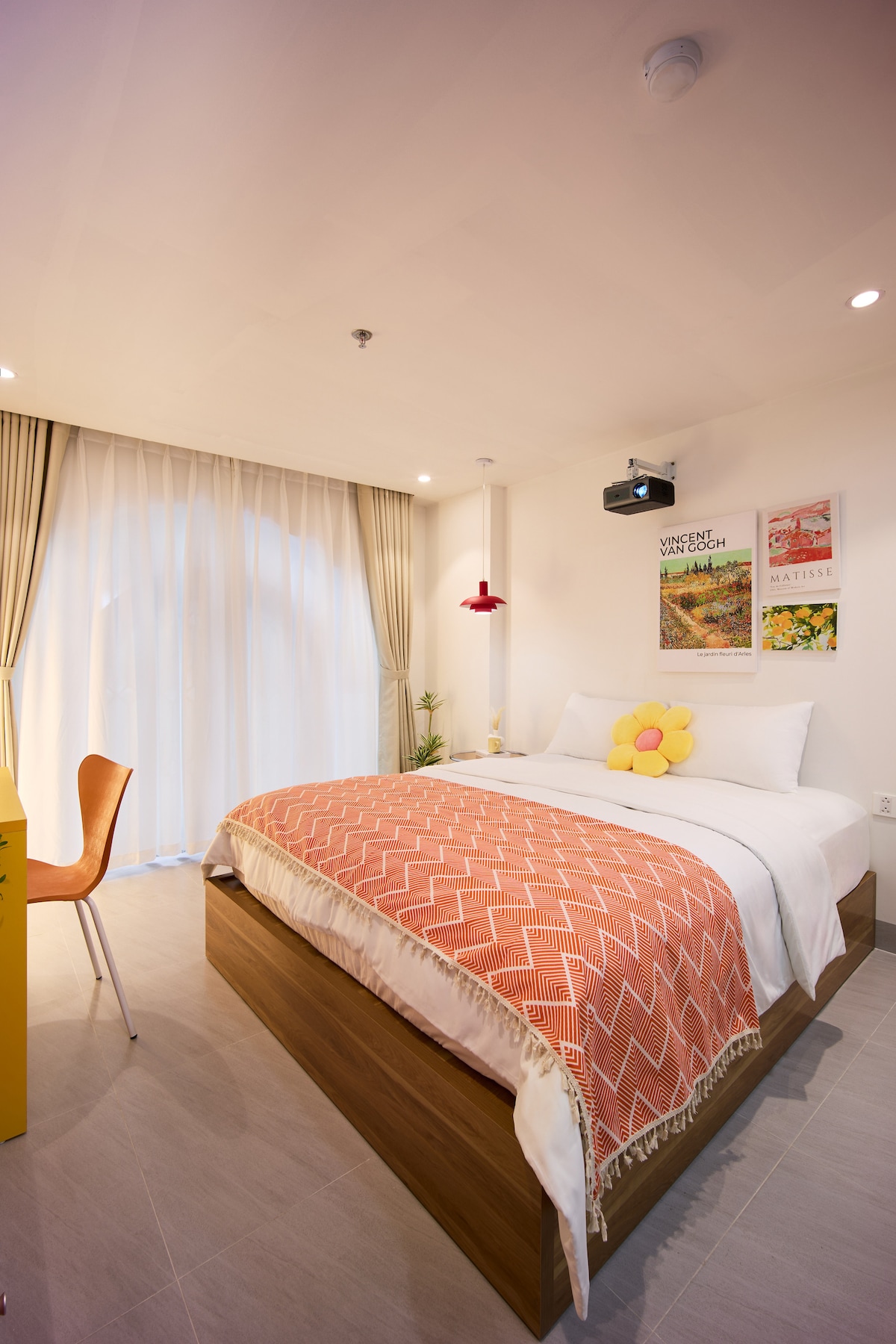 Autumn retreat — warm tones, soft textures, and cozy corners made for slow mornings & movie nights. Our 1BR is spacious w/ comfy sofa bed, and a full kitchen that you can whip up a meal before streaming Netflix on the 100-inch projector screen. Tucked in a quiet cul-de-sac by Han Market and just minutes from Dragon Bridge, it offers both city life and peace Clean, calm, and stylish — like golden hour captured in a room. Take the elevator up, drop your bags, and let Da Nang slow down for you.