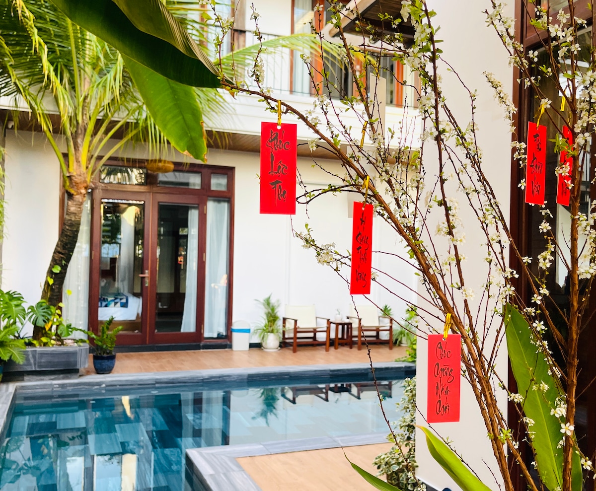 Leaf Vintage 6卧室,泳池-距离会安老城5分钟