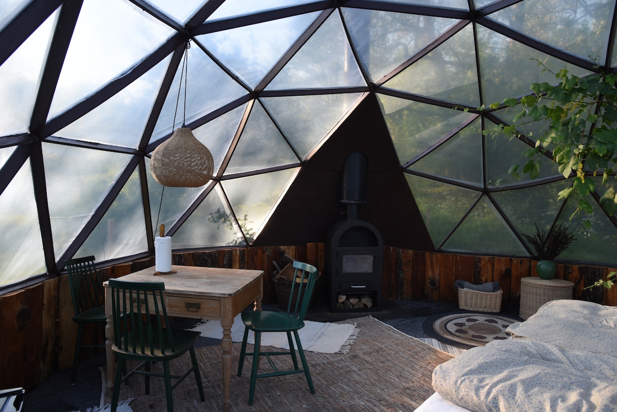 Drømmer du om at vågne op midt i naturen, men uden at gå på kompromis med komforten? Velkommen til vores hyggelige dome – en unik og stemningsfuld glamping-oplevelse, perfekt til par, en lille familie, solo-eventyrere eller dig, der trænger til ro og fordybelse. Her er du midt i naturen, omgivet af skov, en rislende bæk og med heste og får som de eneste naboer.