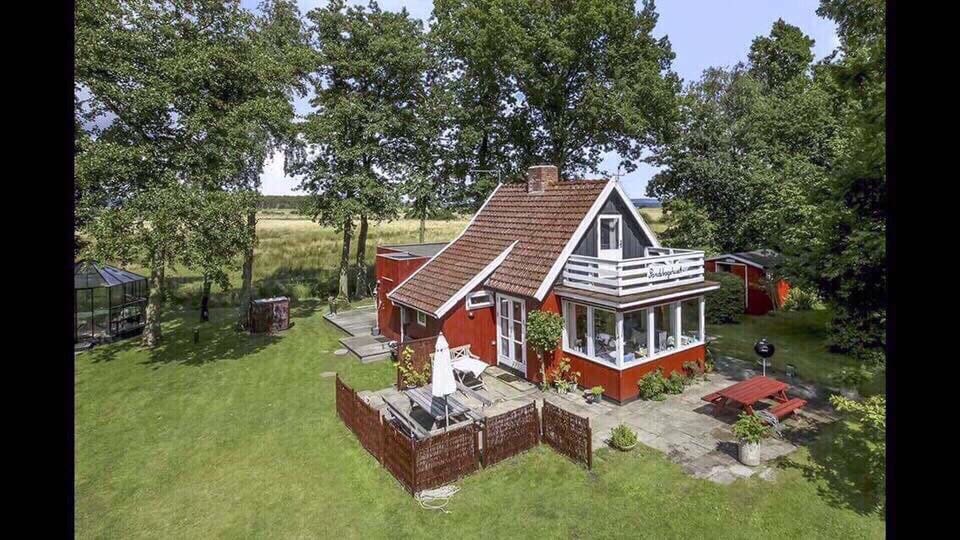 Family friendly summer house with ocean view on large undisturbed property. Perfect for a small getaway in the nature and by the sea. Newly renovated in all wood material and natural colors creating a cozy and homely atmosphere. Room 1: Small double bed (140 cm) Room 2: Two built-in single beds and one junior bed Room 3: Two bunk beds, or convert the lower bunks into a double bed with two single beds on top. You will find the mattress for the double bed stored in the cabins under the beds.