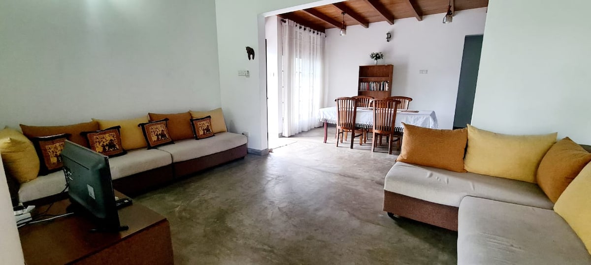 Welcome to your serene escape, close to Colombo. This enchanting villa offers views of lush tropical garden. As you soak in the scenery, keep an eye out for the vibrant array of colourful birds flitting about. Enjoy a soothing bath in the luxurious tub or cook up a delightful meal in the fully equipped kitchen. Take a leisurely stroll through the garden, where you'll discover an assortment of trees, including fragrant cinnamon, pepper & clove, adding to the charm of your holiday retreat.