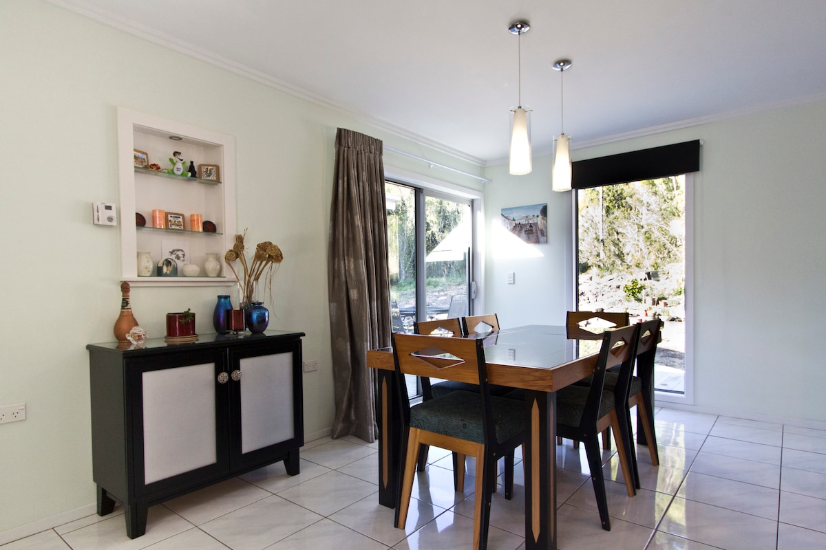 Great location! Sparkling clean, warm, light & airy. Self contained recent build with tasteful minimalist and comfy relaxed decor. Wifi and Apple TV included Beach is one house away. Glowworms are 2 minutes walk, town centre is in walking distance. Beds are comfy with electric blankets for winter warmth. Dining area opens to back deck.