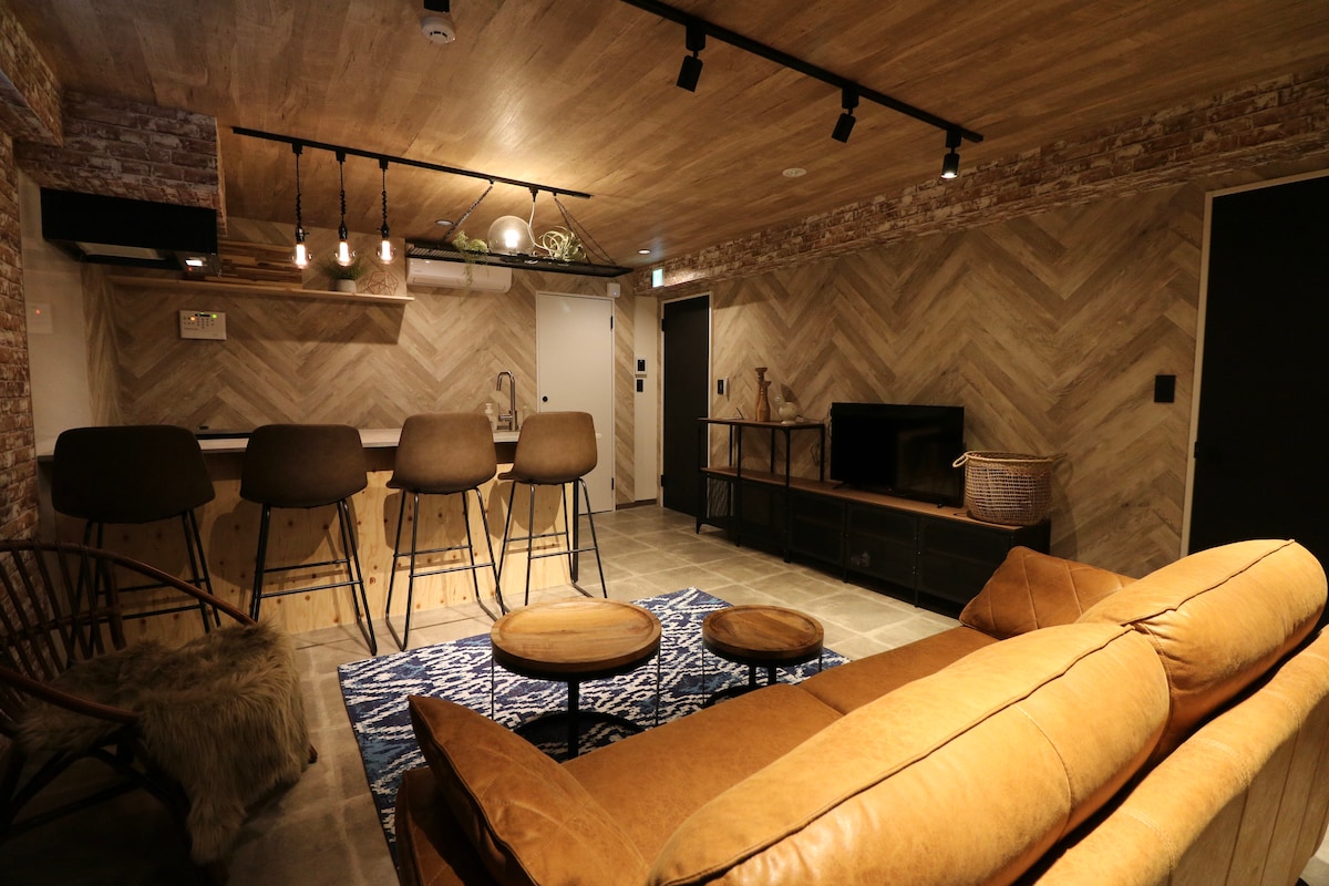 Rooms comfortably accommodate up to 4 people. The hotel has the atmosphere of a modern hideaway cafe. This 1LDK room is located on the first floor of the building. It has one bedroom and one bathroom, available for private use.