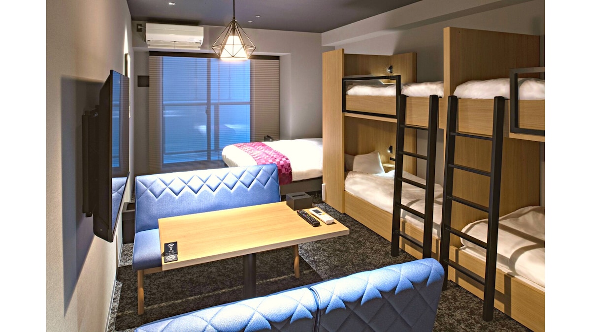 最多可住7人/距离小樽站2分钟!适合团体入住的热门房间!【ALPHABED INN 小樽站前豪华三人间】